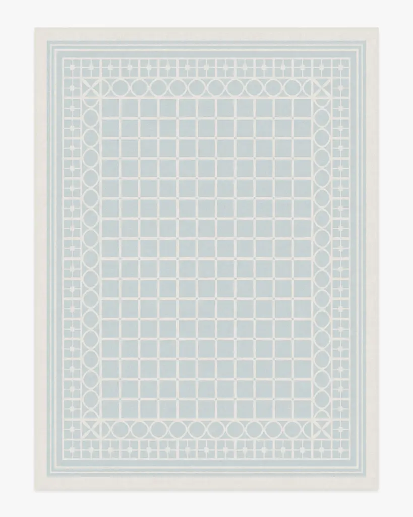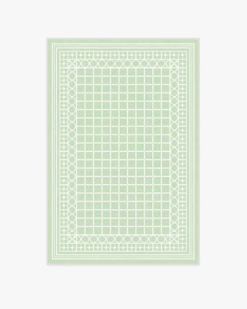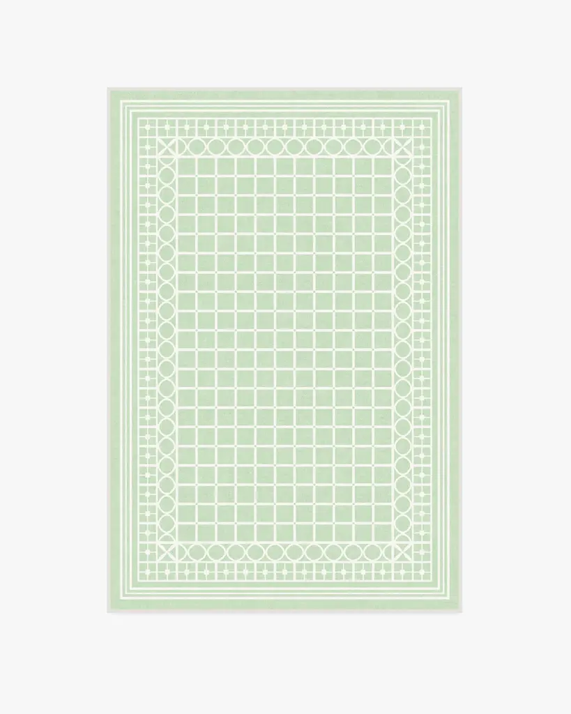 Vacation starts here. With breeze block motifs pulled from Gray Malin’s travel photography, the sage green Palm Beach Rug brings laid-back elegance to your space. Crisp ivory details complete the look for that just-checked-in feeling. Water-resistant, stain-resistant, and fully machine-washable. Colors may vary by device and lighting.