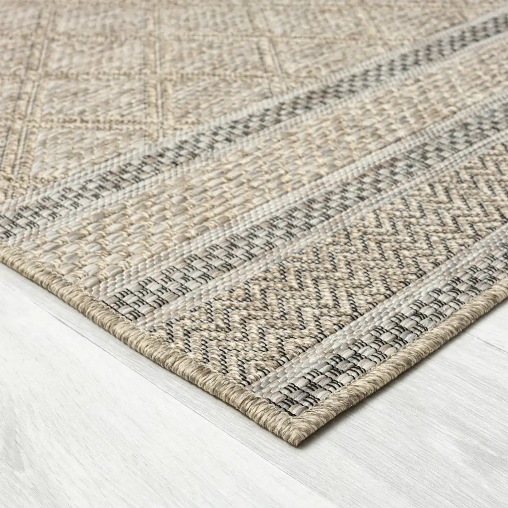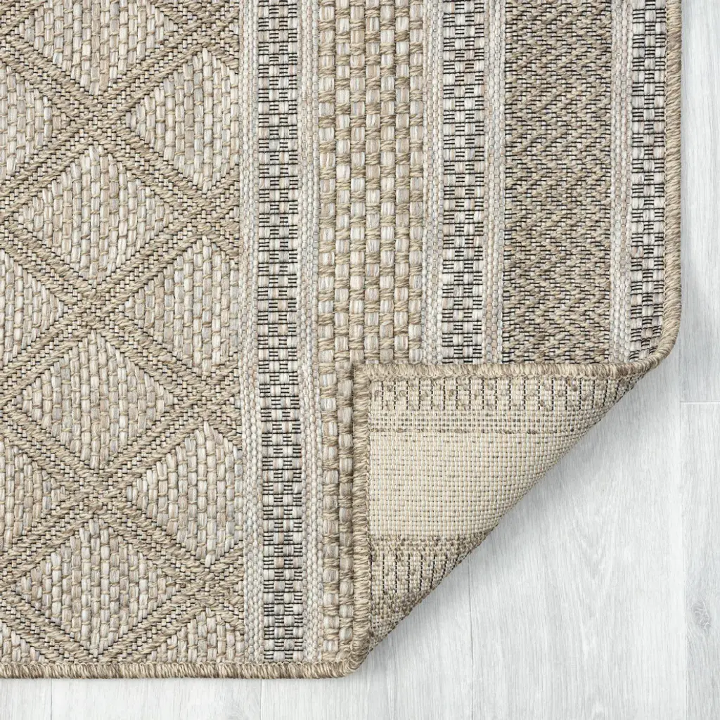 Elevate your home decor with this stylish geometric area rug, suitable for both indoor and outdoor use. Inspired by the earthy hues and intricate patterns of jute textiles, this rug boasts over five distinct designs to add a touch of natural beauty to any space. Crafted using advanced powerloom technology in Egypt, it''s made from polypropylene threads that resist stains and fading, ensuring longevity and easy maintenance. Whether it''s your living room, dining area, kitchen, bedroom, or patio, this versatile rug effortlessly blends aesthetic appeal with practicality. Enhance your home with this timeless, durable, and versatile indoor/outdoor rug.Features:- 100% Polypropylene- Power-loomed in Egypt- Outdoor Safe- Stain, Fade, and Mold Resistant- Designed to be like natural jute texture for elevated designRug Care:- Hose Wash outdoors and dry in shade- Rug pad recommended for longevity, and to prevent sliding and shifting- To expedite the flattening process, roll the rug in the opposite direction and massage visible creases with your hands.- Vacuum regularly and spot clean as needed.- Rotate it periodically for even wear.- For storage, store rug in a well-ventilated dry area.PLEASE NOTE: Digital images and colors may vary due to differences in computer monitors and mobile phones. Measurements are approximate and patterns may vary slightly according to shape and size selected.