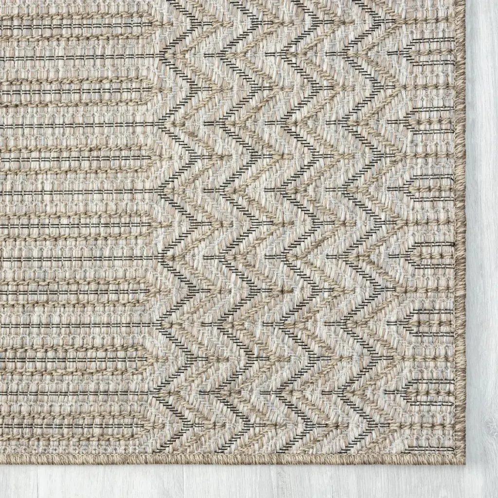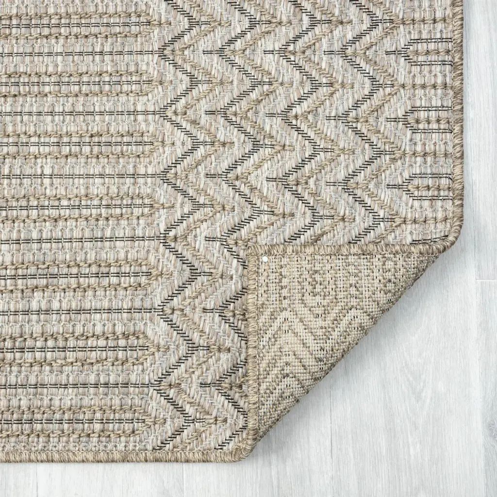 Elevate your home decor with this stylish chevron area rug, suitable for both indoor and outdoor use. Inspired by the earthy hues and intricate patterns of jute textiles, this rug boasts a distinct braiding design to add a touch of natural beauty to any space. Crafted using advanced powerloom technology in Egypt, it''s made from polypropylene threads that resist stains and fading, ensuring longevity and easy maintenance. Whether it''s your living room, dining area, kitchen, bedroom, or patio, this versatile rug effortlessly blends aesthetic appeal with practicality. Enhance your home with this timeless, durable, and versatile indoor/outdoor rug.Features:- 100% Polypropylene- Power-loomed in Egypt- Outdoor Safe- Stain, Fade, and Mold Resistant- Designed to be like natural jute texture for elevated designRug Care:- Hose Wash outdoors and dry in shade- Rug pad recommended for longevity, and to prevent sliding and shifting- To expedite the flattening process, roll the rug in the opposite direction and massage visible creases with your hands.- Vacuum regularly and spot clean as needed.- Rotate it periodically for even wear.- For storage, store rug in a well-ventilated dry area.PLEASE NOTE: Digital images and colors may vary due to differences in computer monitors and mobile phones. Measurements are approximate and patterns may vary slightly according to shape and size selected.