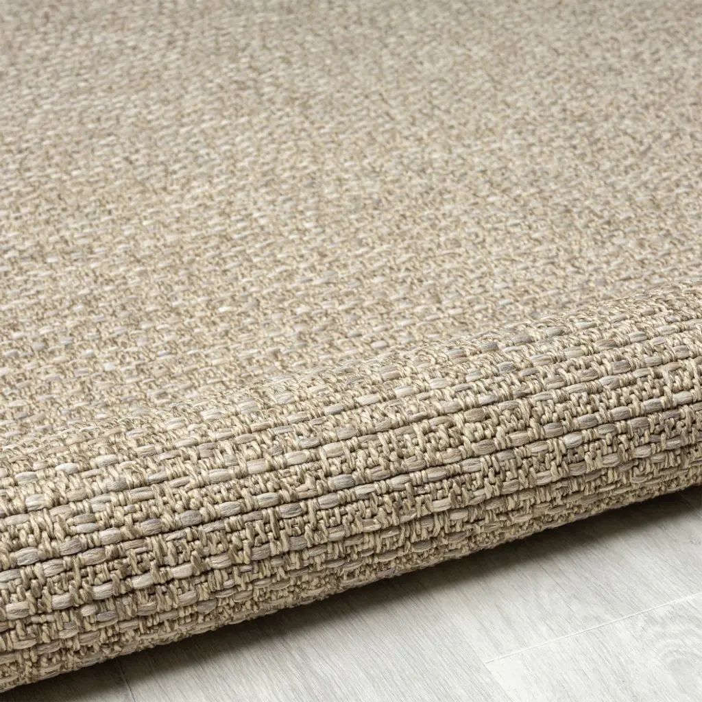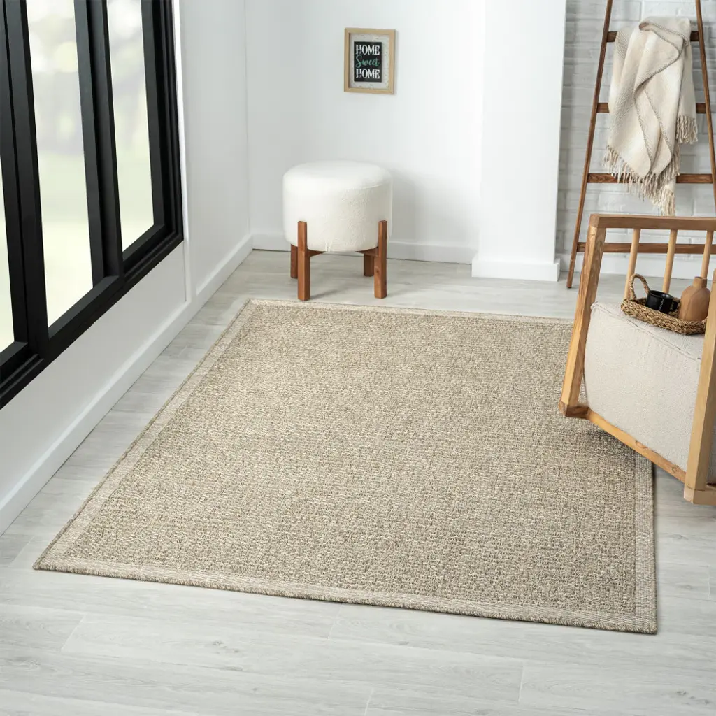 Elevate your home decor with this stylish solid area rug, suitable for both indoor and outdoor use. Inspired by the earthy hues and intricate patterns of jute textiles, this rug boasts over five distinct designs to add a touch of natural beauty to any space. Crafted using advanced powerloom technology in Egypt, it''s made from polypropylene threads that resist stains and fading, ensuring longevity and easy maintenance. Whether it''s your living room, dining area, kitchen, bedroom, or patio, this versatile rug effortlessly blends aesthetic appeal with practicality. Enhance your home with this timeless, durable, and versatile indoor/outdoor rug.Features:- 100% Polypropylene- Power-loomed in Egypt- Outdoor Safe- Stain, Fade, and Mold Resistant- Designed to be like natural jute texture for elevated designRug Care:- Hose Wash outdoors and dry in shade- Rug pad recommended for longevity, and to prevent sliding and shifting- To expedite the flattening process, roll the rug in the opposite direction and massage visible creases with your hands.- Vacuum regularly and spot clean as needed.- Rotate it periodically for even wear.- For storage, store rug in a well-ventilated dry area.PLEASE NOTE: Digital images and colors may vary due to differences in computer monitors and mobile phones. Measurements are approximate and patterns may vary slightly according to shape and size selected.