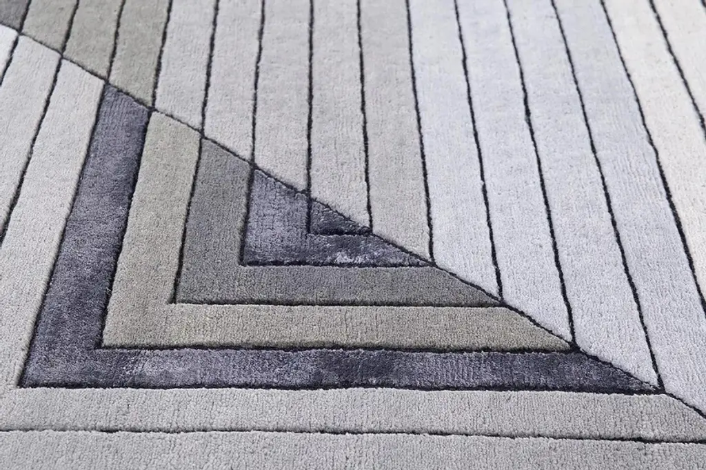 Papiroflexia is a hand-knotted patterned rug in wool and viscose. Available in different texture and shape variants.The Papiroflexia collection derives from the parallelism between representation and reality, between floor plans and three-dimensionality. Starting from traditional rectangular shapes, these rugs develop through different types of folds in orthogonal versions or with more complex shapes, inspired by the "Origami" art that has led the Spanish designer Miguel Reguero to discover new geometries. Hand-knotted rugs in wool and viscose with variations in textures, colors and shades aimed at creating amazement in the observer and decorating contemporary spaces.Origin: IndiaPile Composition: Viscose, woolThickness: ≈ 1 cmTechnique: Hand-knottedCustom colors on request