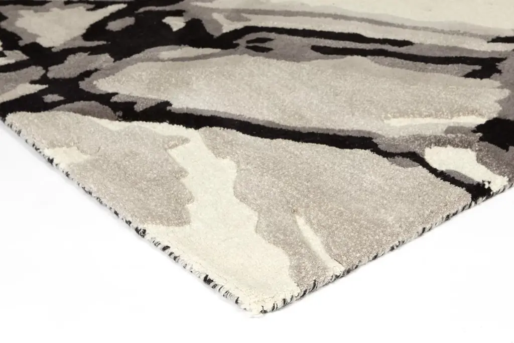 Our Paradox rug features a hand-tufted rug construction made with 100% wool and a 100% cotton backing. Neutral shades of ivory, black and grey combine in an abstract pattern, creating a beautiful, almost watercolor-like visual effect. Available in multiple sizes. Please select size before adding to cart. Care Instructions: Professional Clean Only.