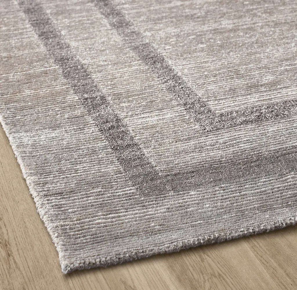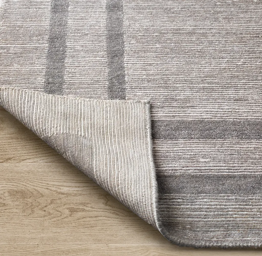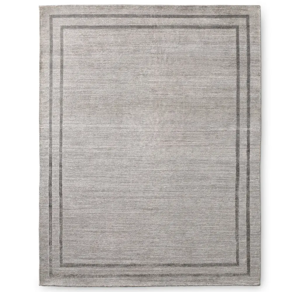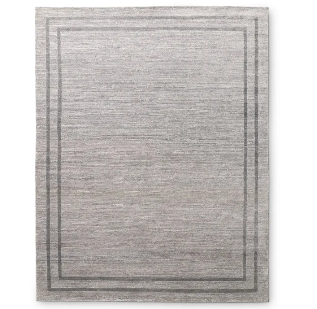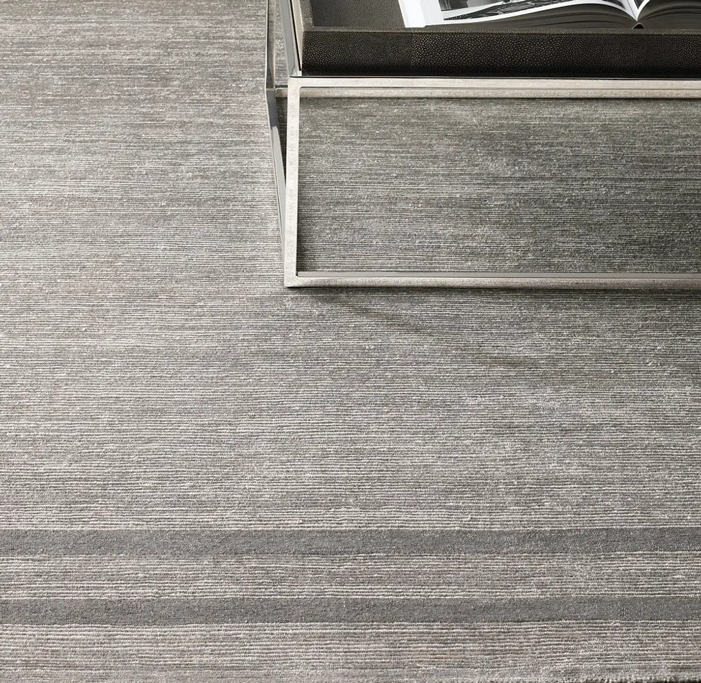 Our Parallel Border rug is framed with tonal color and cut pile, creating subtle contrast with surrounding striated loops and shearing. The fine viscose yarns, hand knotted in an exceptionally dense 120 knots per square inch, add a silken feel and lustrous finish.