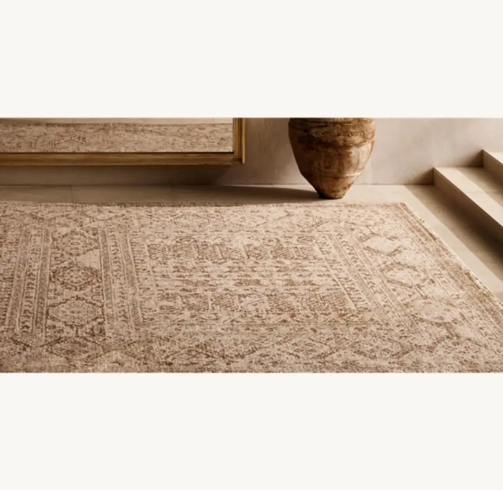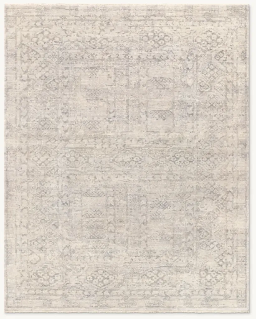 Parisa's tonal palette lends simplicity to the intricate motifs of traditional Persian rugs. Hand knotted from wool, the pile is sheared to produce the delicately textured finish of an antique rug.