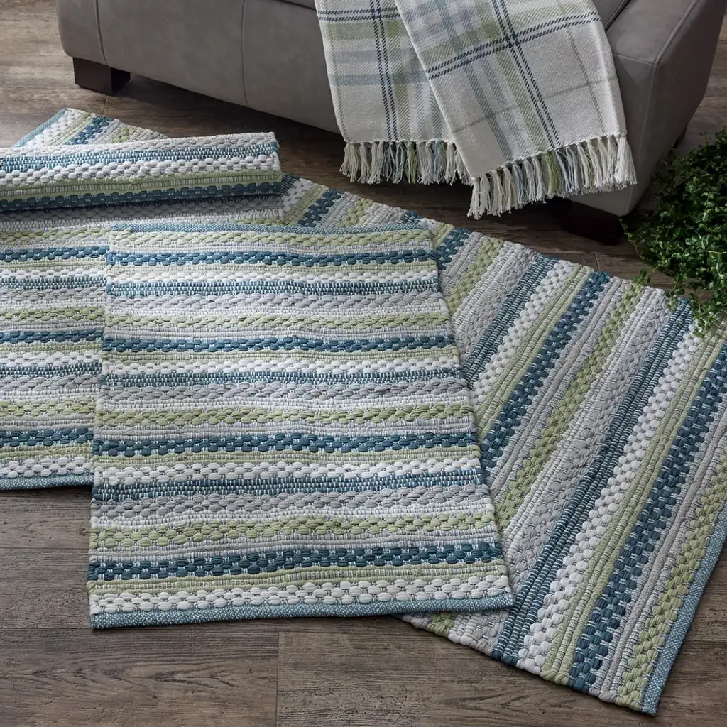 This beautiful area rug with woven sage, gray and cream is expertly crafted from a high-quality cotton composition. The rug is soft and luxurious under foot using a durable flat-pile construction, creating a highly versatile accessory for any room in the house that adds texture and warmth to a room.
