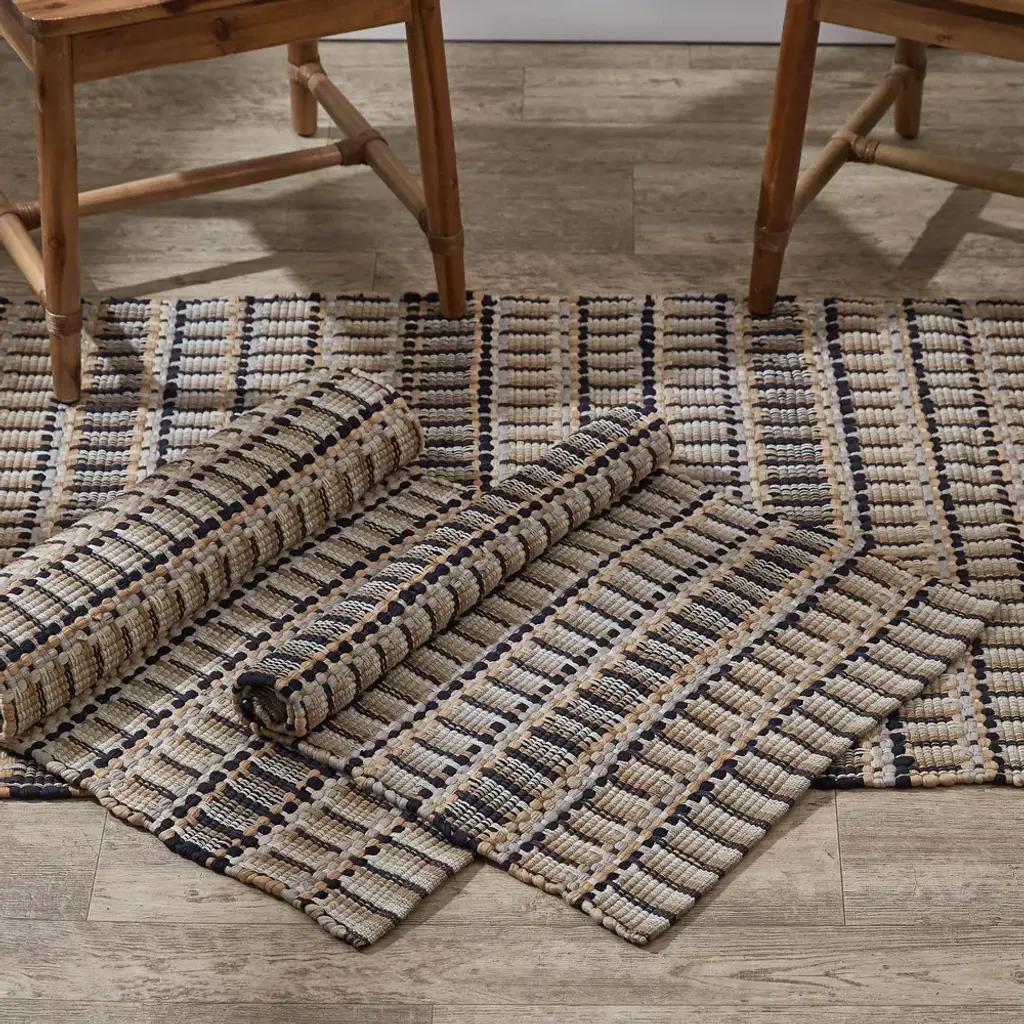 Instantly transform your home setting with comfortable neutrals fit for year-round use and a variety of interior design styles. Subtly add to a room space with the versatile gray, navy blue and tan stripe pattern featured on this woven chindi rag rug runner. This timeless chindi rag rug is made of 100% high-quality cotton for a long-lasting home decor statement that will prevent living, kitchen, entryway and dining room floors from potential marks while also providing a cozy, stylish accent.