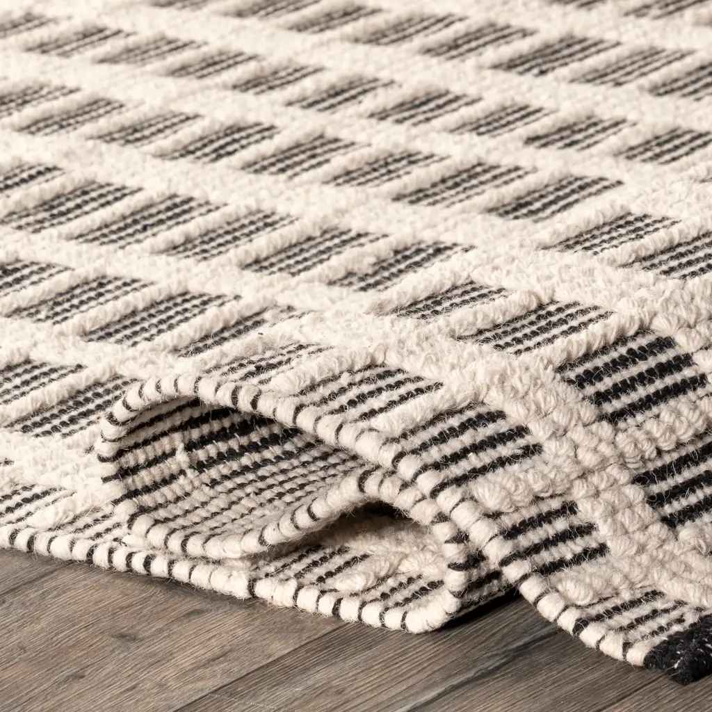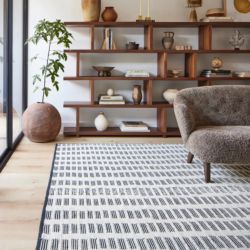 Check, please! We're ready to bring the Parker Rug home right away. In shades of black and white, it exudes a classic, monochrome vibe that's perfectly balanced by the abstractly gridded design. It delivers a high-end-but-accessible-for-all look style. The hand-hooked construction delivers incredible detail and texture, and the wool-cotton blend elevates with ease. The search is over–the perfect foundation for your room is here.