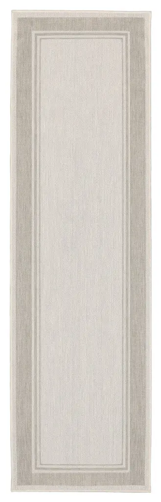 Parlan Solid Border Indoor-Outdoor Area Rug, Ivory, 1'10"x7'3"