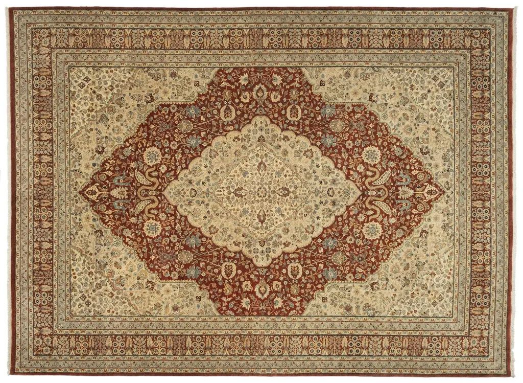 Pasargad Agra Collection Hand-Knotted Lamb's Wool Area Rug- 9' 1" X 12' 7"