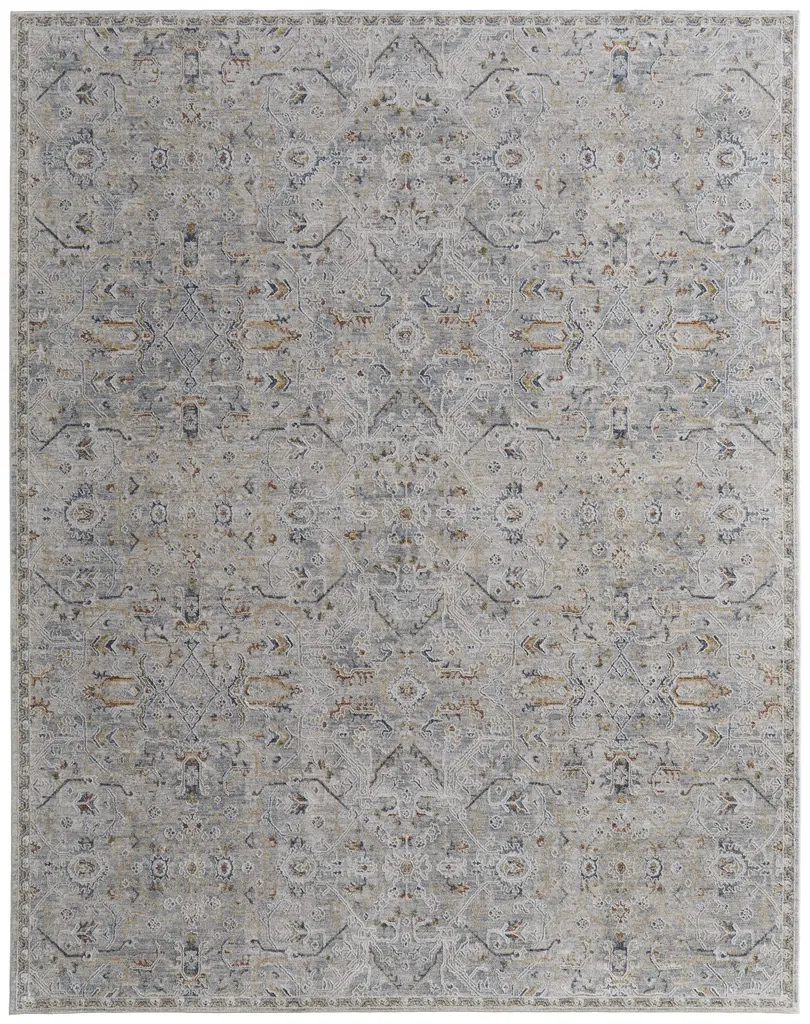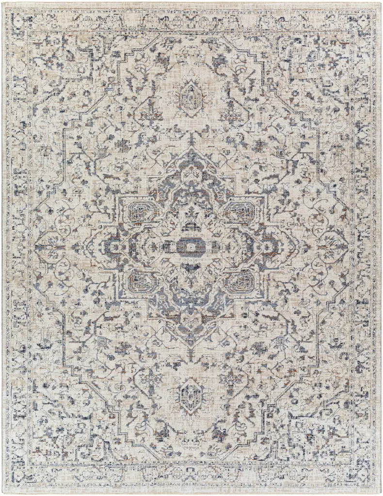 Pasha Transitional Distressed - Taupe/ivory/blue Area Rug - 9'0" X 12'8" Rectangle