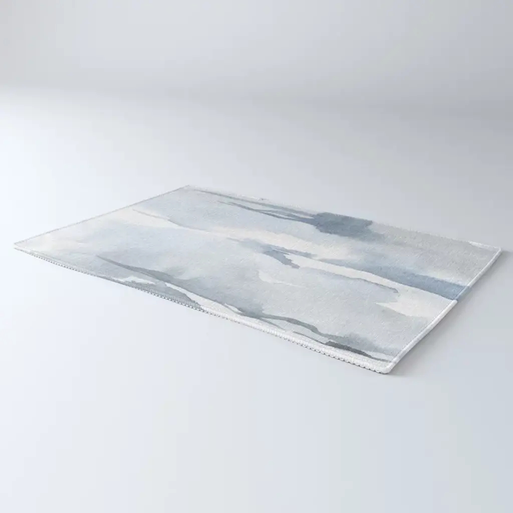 Pastel Blue Gray Abstract Watercolor Brushstrokes Stripes Pattern Rug