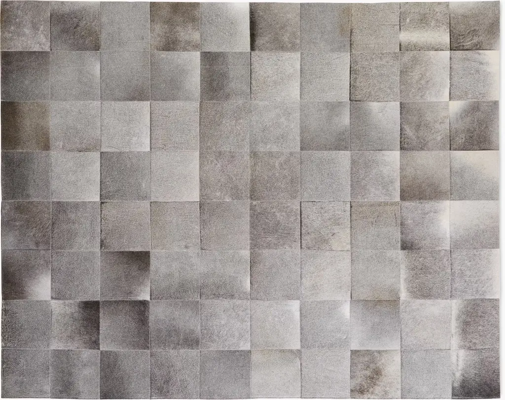 Our Patch Cowhide Rug is a neutral area rug that complements a modern aesthetic with its interesting patchwork effect and soft texture. It's produced by hand-sewing large individual squares of hide together with thick polyester threading, resulting in a durable piece that stands up to foot traffic. Each one is unique, with its own distinct natural markings. Can be washed with mild soap and water and swept or vacuumed clean. Rug pad recommended. Made in Argentina.