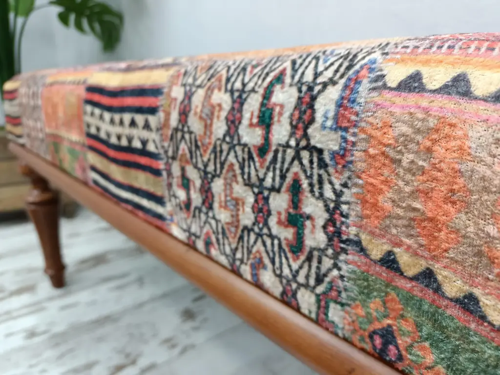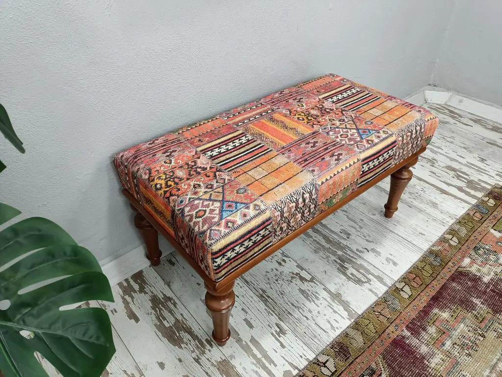 Patchwork Pattern Rug Print Fabric Upholstered Piano Bench