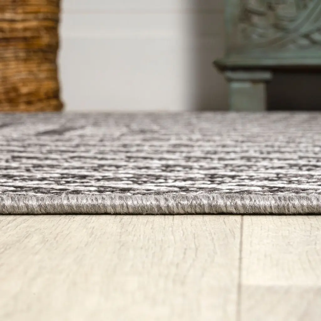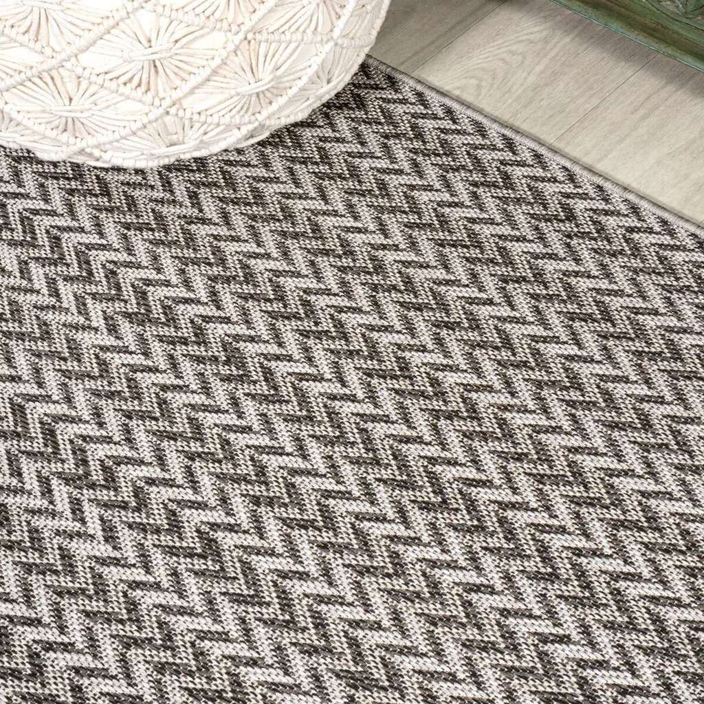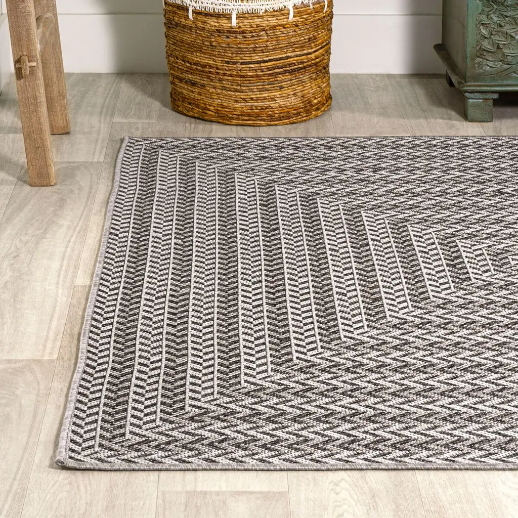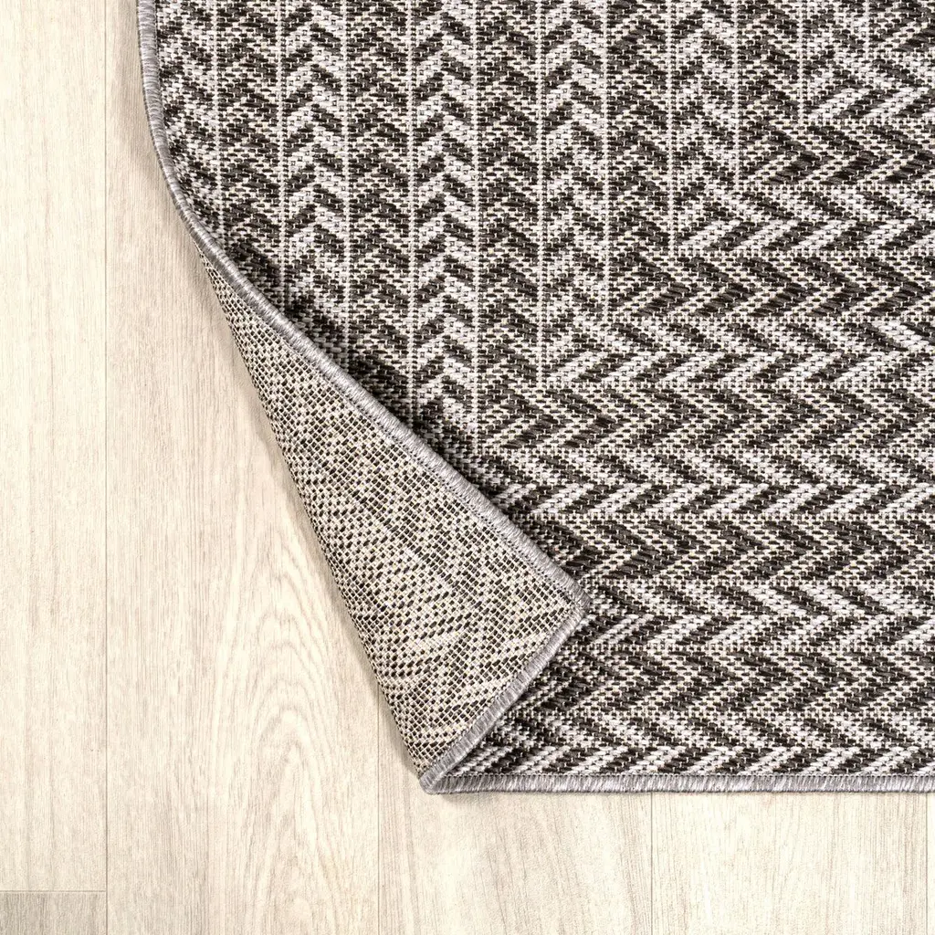 A fresh take on the classic braided rug, this monochromatic version features concentric rectangles of chevrons. Made of durable polypropylene, the rug can stand up to heavy traffic outdoors as well as inside. A rug pad is recommended to help prevent slipping.