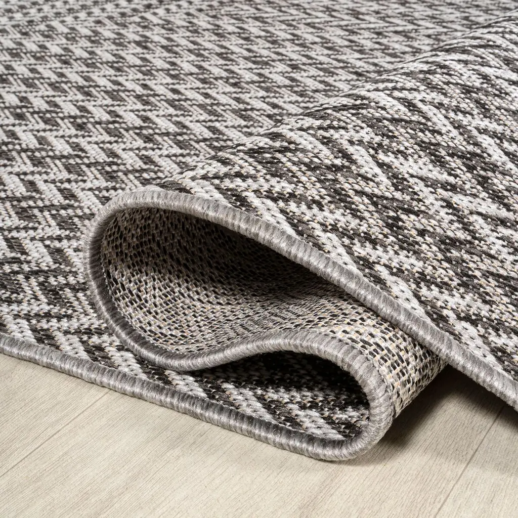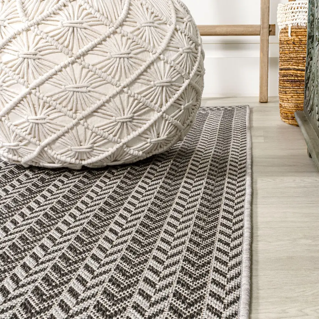 A fresh take on the classic braided rug, this monochromatic version features concentric rectangles of chevrons. Made of durable polypropylene, the rug can stand up to heavy traffic outdoors as well as inside. A rug pad is recommended to help prevent slipping.
