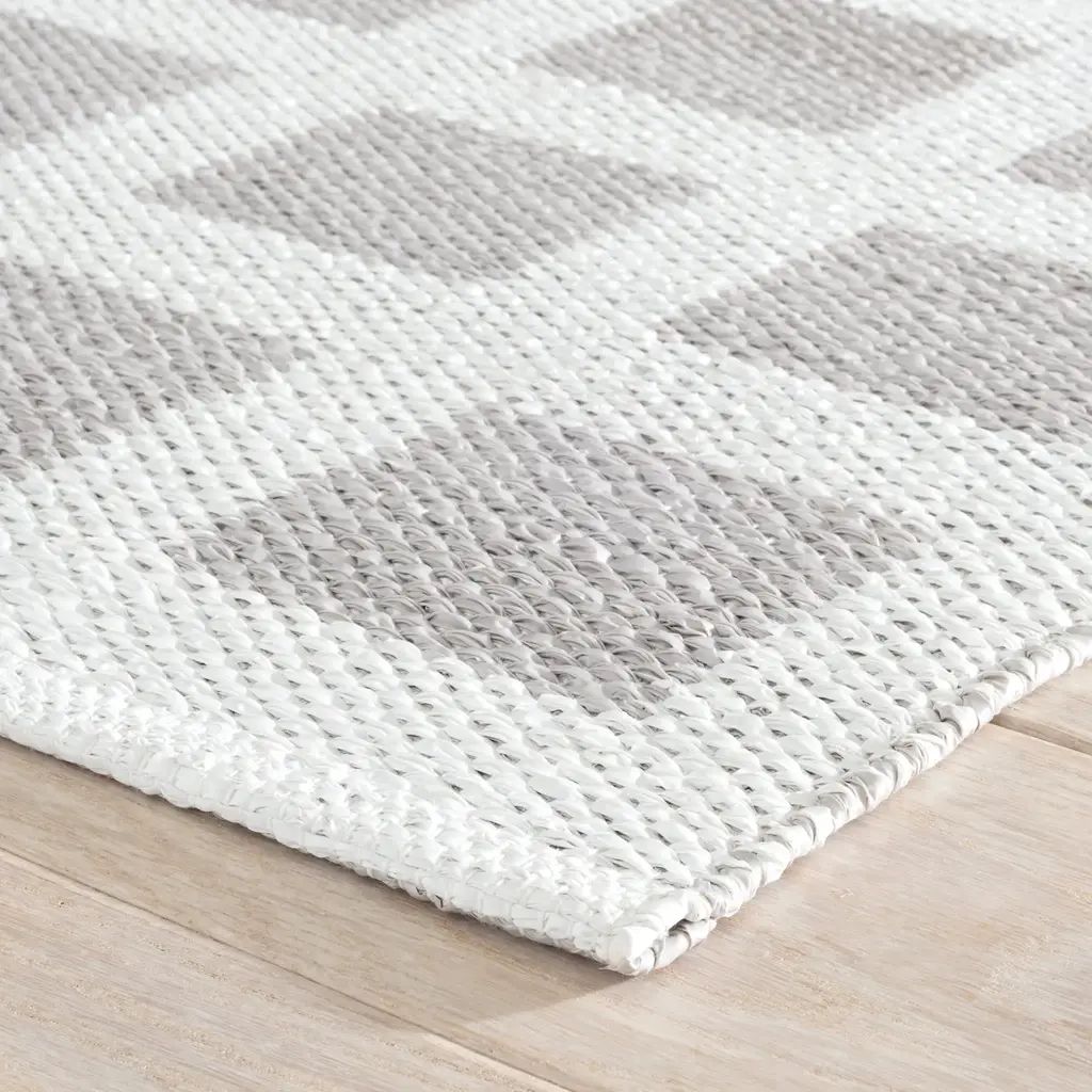The modern simplicity and symmetry of a simple check is always in style, whether in a country cottage or an urban loft. Offered here in a reversible flat weave. Our latest matte PVC Indoor/Outdoor rug breed is light and dense with good stability and comes in a variety of modern markings. It lies flat and stays put with the look and feel of a natural fibre. Because it is water resistant, it exhibits the same easy clean up qualities, and stain and mildew resistance, as our other performance rugs.