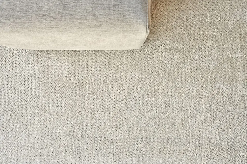 Luxurious and chic, the Paz rug offers visual intrigue with its textured grid pattern. Hand made with silky viscose, the neutral tone and geometric design make it a versatile choice to elevate a space.