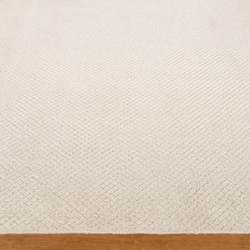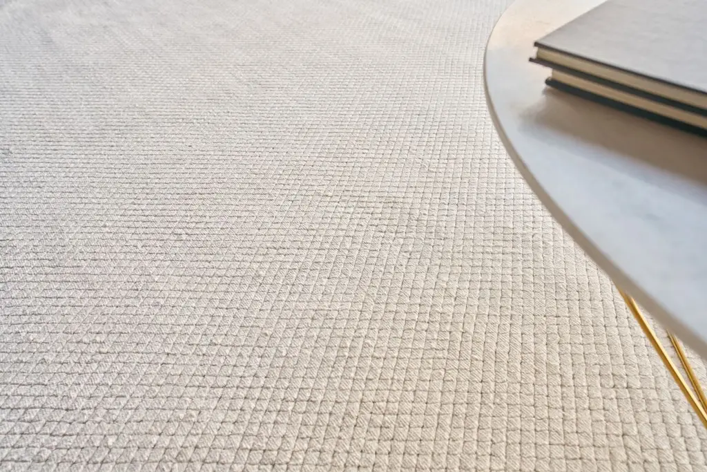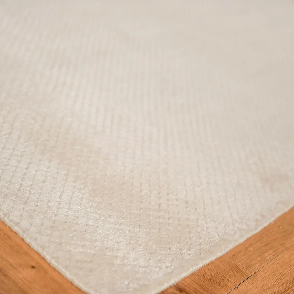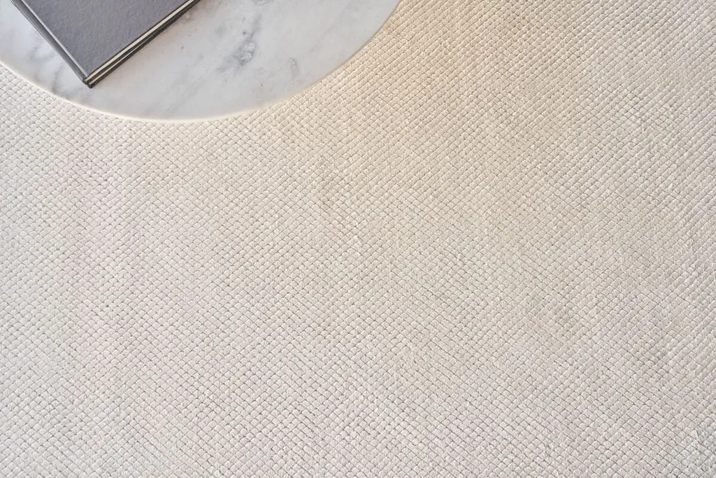 Luxurious and chic, the Paz rug offers visual intrigue with its textured grid pattern. Hand made with silky viscose, the neutral tone and geometric design make it a versatile choice to elevate a space.