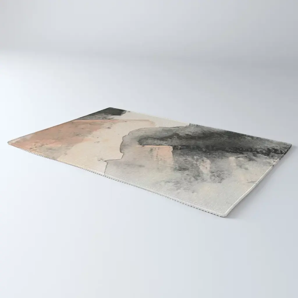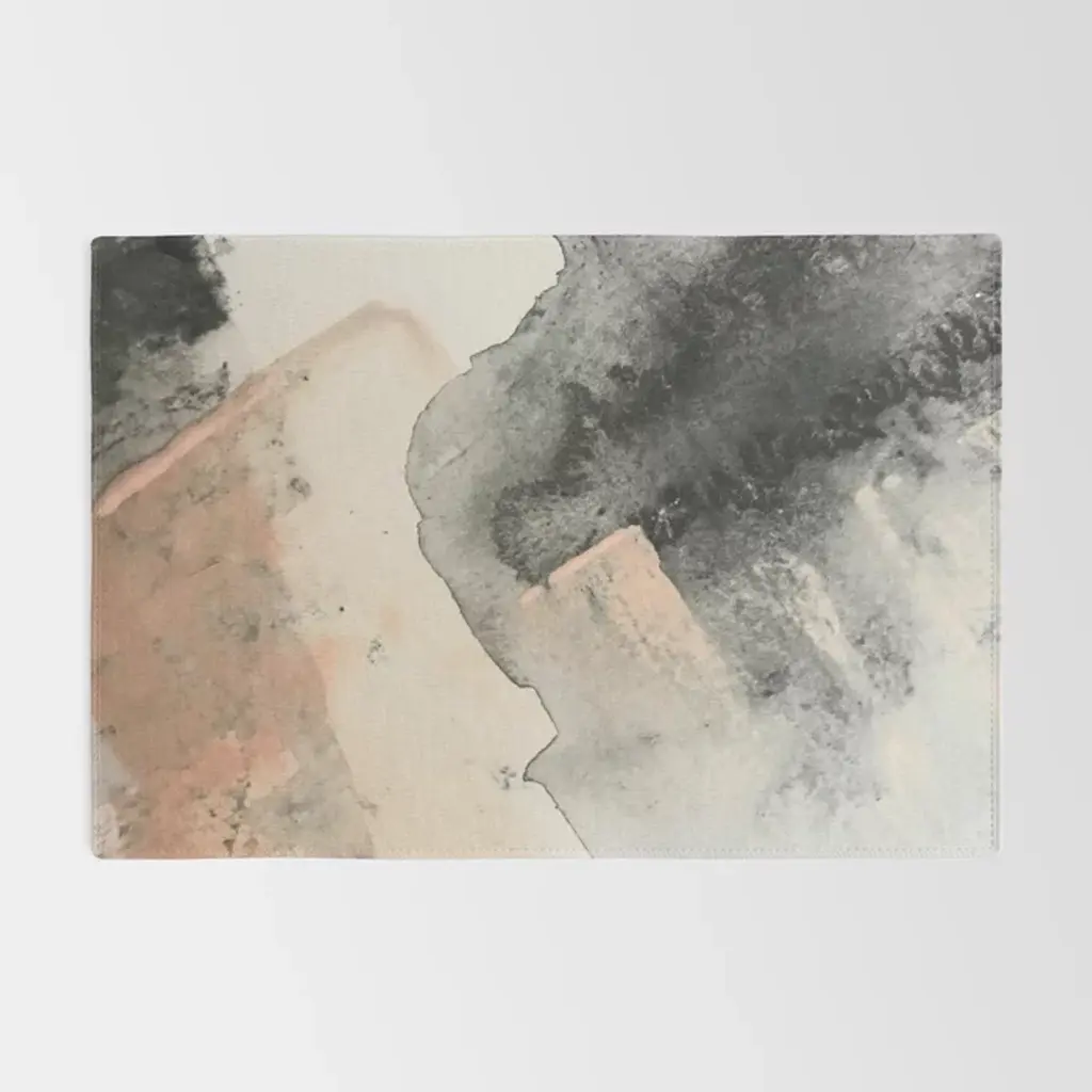 Peace And Quiet [2]: A Pretty, Minimal Abstract Piece In Gray And Peach By Alyssa Hamilton Art Rug
