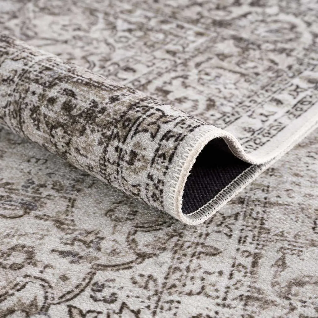 Brand: Hauteloom Collection: Ariana Colors: Pearl, Dark Brown, Brown, Light Brown, Taupe Construction: Machine Printed Material: 100% Polyester Pile: No Pile Styles: Traditional Backing: Outdoor Latex Machine Washable: Yes Made In: Turkey Thickness: 0.16" Price Range: $$$$$ (Most Affordable)