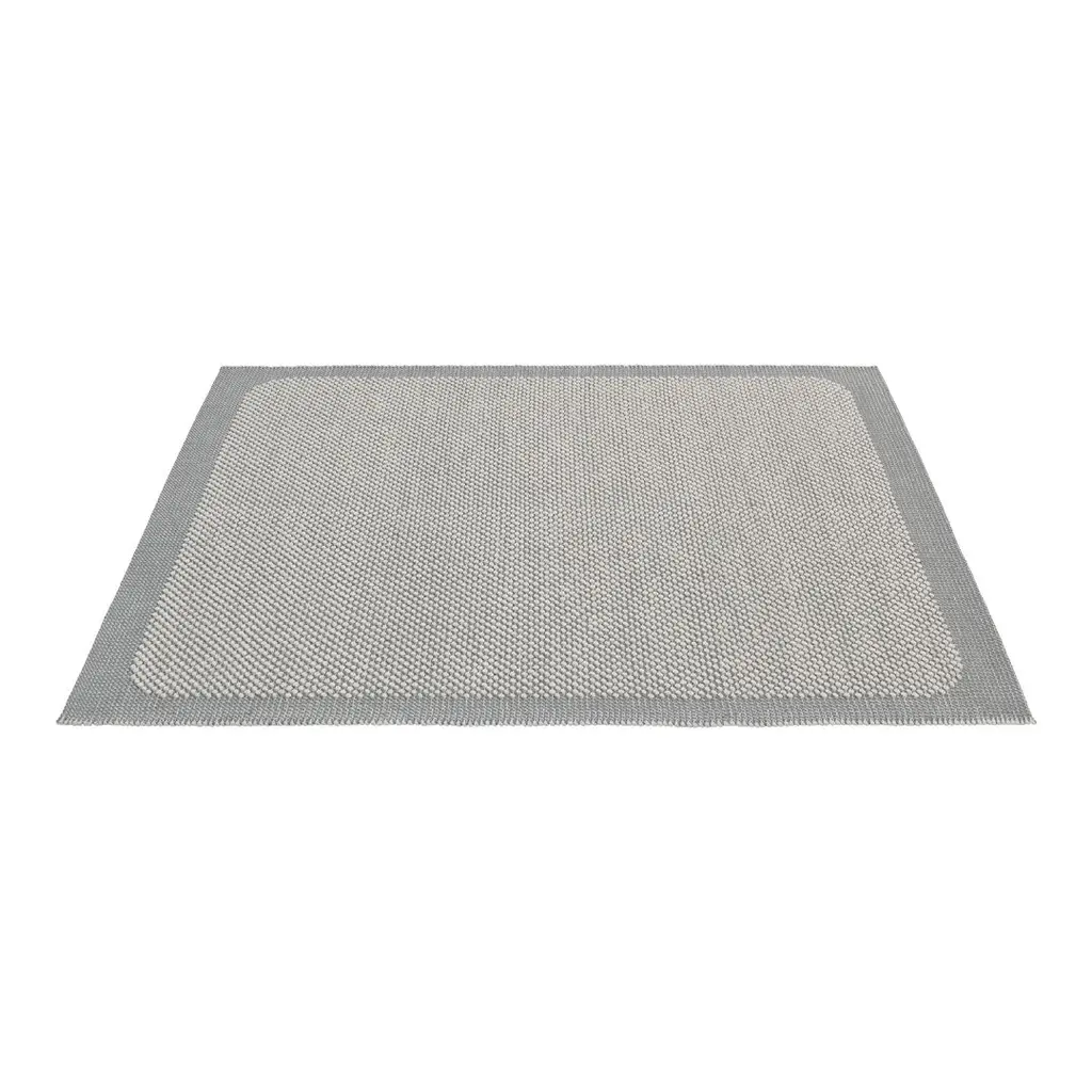 Please Note: The color of the Pebble Rug may vary due to the wool's natural base color. "Pebble Rug is inspired by the sensuous feeling of a pebbled beach with its diverse and tactile surface, inviting you to take off your shoes and walk across it barefooted. With a handwoven structure that references fashion textiles, the Pebble Rug plays with the contrasting materials of its soft, woolen loops, sitting atop a sturdy canvas base in cooling jute yarn. Pebble Rug brings a new perspective to any space through its woolen loops, popping up from the ground like sprouts in a bed of moss, joined by the distinct woven texture of its surface." - Margrethe Odgaard, Designer Bringing a new perspective to the traditional notion of a rug, Margrethe Odgaard's Pebble Rug for Muuto plays with contrasting materials for a vibrant and sophisticated expression, paired with a modern color palette. Crafted with its body in a cooling jute yarn with a distinct, shiny surface, the Pebble Rug takes its name from the soft, fluffy wool loops that gives off the feeling of walking across a pebbled beach when stepping across the rug barefooted. With the fluffy loops popping up like sprouts from the ground, Pebble Rug has an at once graphic and illustrative expression, enhanced by the smoothly rounded corners between the outer jute frame and inner loop area.