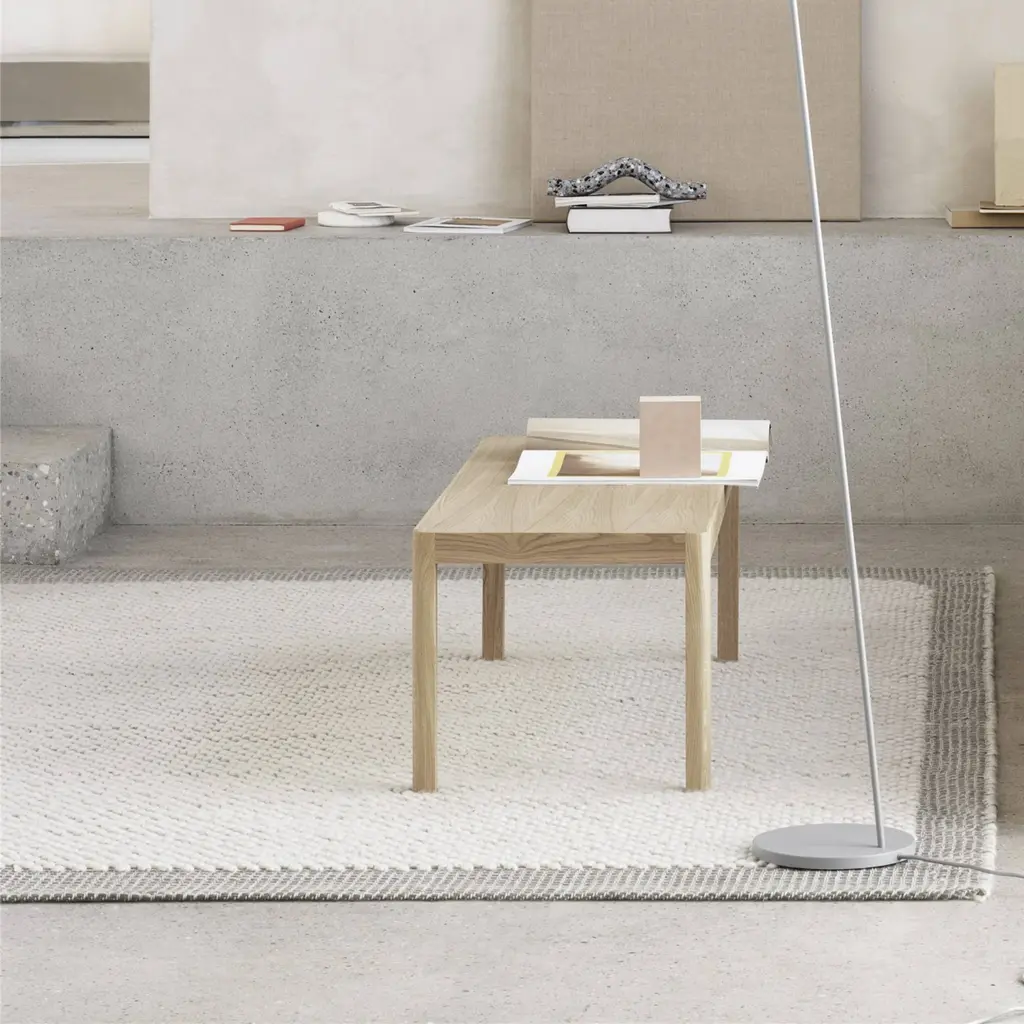 Reminiscent of a smoothly pebbled beach, this handwoven rug plays its soft woolen loops against a jute canvas background. Pebble Rug has a versatile look that suits both residential settings as well as hospitality, hotel or co-working spaces. Hardwearing and sturdy, the rug’s natural fibers make it easy to clean and its canvas backing fused with latex keeps it laying smoothly on the floor.