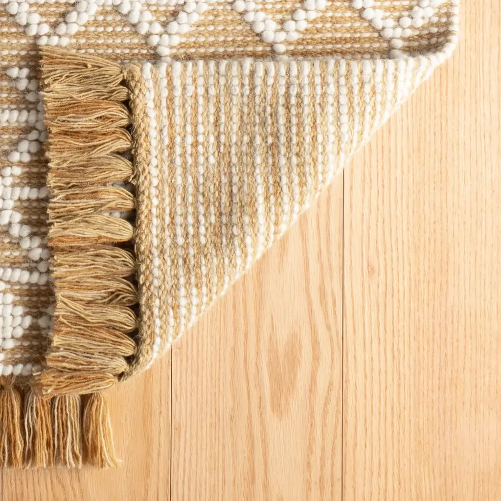 The Pembrook Handwoven Wool Rug has an intricate, Fair Isle-inspired pattern made from raised ivory loops on a flatwoven background. Durable and soft, with a classic knotted fringe to complete the look.