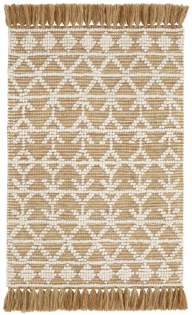 The Pembrook Handwoven Wool Rug has an intricate, Fair Isle-inspired pattern made from raised ivory loops on a flatwoven background. Durable and soft, with a classic knotted fringe to complete the look.