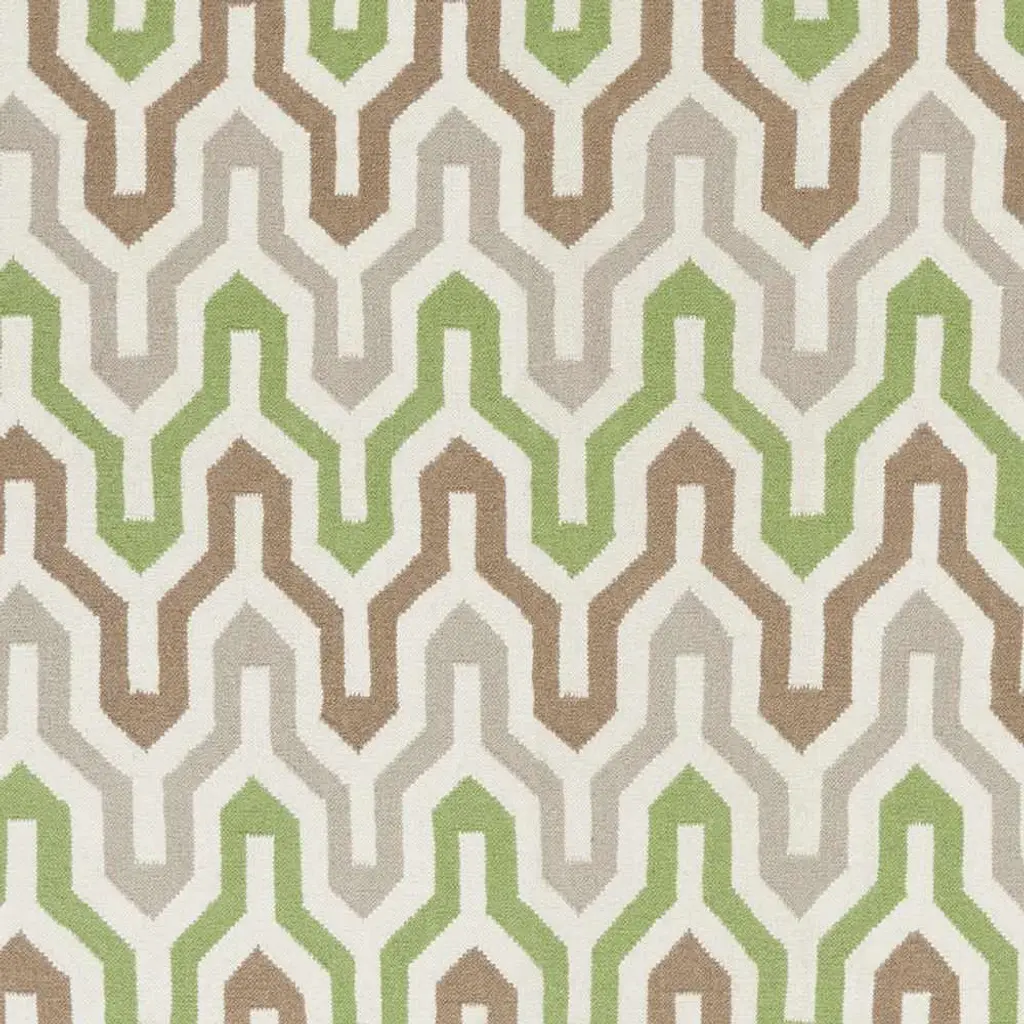 Collection: Penryn Colors: Ivory, Medium Brown, Medium Gray, Lime Green Construction: Hand Woven Material: 100% Wool Pile: No Pile Styles: Transitional Made In: India Thickness: 0.16" Price Range: $$$$$ (Most Affordable)