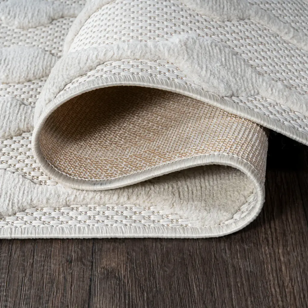 Inspired by vintage Moroccan rugs, our indoor/outdoor rug adds geometric pattern to your porch, patio or sunroom. The classic diamond and dot pattern has a modern twist, woven in shades of ivory. Mingled threads give this rug a vintage vibe that''s perfect for an entry, kitchen, hallway, living room or bedroom too. The pet-friendly and kid-proof low pile design makes it easy to clean, and perfect for the beach house.Features:• Power loomed in a low pile that''s soft and durable, with a latex backing for added stability• Woven in shades of ivory with mingled beige threads for a handmade effect• Made from easy-care polypropylene - just sweep, vacuum or hose down with mild soap and water• 100% Polypropylene• No backing, use of rug pad is recommended (sold separately)• Power Loomed in Turkey• Actual Dimension: 5 ft. 3 in. x 5 ft. 3 in. Square• Color: Ivory• Thickness measures: 0.43 in.• Available in multiple sizes and/or colorsRug Care:• Vacuum regularly and spot clean as needed; avoid direct and continuous exposure to sunlight; use brushless vacuum; remove spills immediately; if liquid, blot with clean, undyed cloth by pressing firmly around the spill to absorb as much as possible; for hard to remove stains, professional rug cleaning is recommended; store in a dry, well ventilated area and rotate for consistent wear• Packing and shipping may cause temporary creases in rugs, which will flatten out after a week on the floor; to expedite the process, try back-rolling your rug before laying it down, and then allow ample time for the remaining creases to relax• Please Note: Due to differences in monitors, some rug colors may vary slightly. Lengths and widths may vary from the published dimensions. Patterns may vary slightly according to shape and size selected.About us:Style your floors with JONATHAN Y. By combining fine craftsmanship and design, this New York creative studio is bringing fashion to your floors. The collection mixes sustainable organic materials, vibrant colors and trend worthy styles to create JONATHAN Y''s distinctive catalog of rugs.