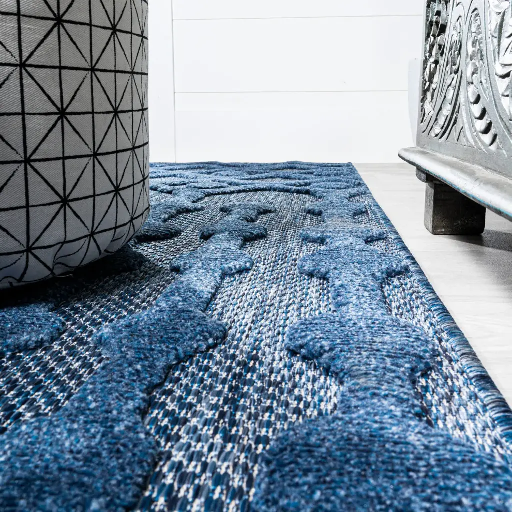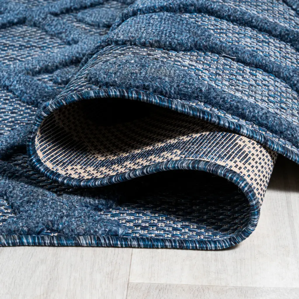 Inspired by vintage Moroccan rugs, our indoor/outdoor rug adds geometric pattern to your porch, patio or sunroom. The classic diamond and dot pattern has a modern twist, woven in shades of navy and denim. Mingled threads give this rug a vintage vibe that''s perfect for an entry, kitchen, hallway, living room or bedroom too. The pet-friendly and kid-proof low pile design makes it easy to clean, and perfect for the beach house.Features:• Power loomed in a low pile that''s soft and durable, with a latex backing for added stability• Woven in shades of navy with mingled threads for a handmade effect• Made from easy-care polypropylene - just sweep, vacuum or hose down with mild soap and water• 100% Polypropylene• No backing, use of rug pad is recommended (sold separately)• Power Loomed in Turkey• Actual Dimension: 5 ft. 3 in. x 5 ft. 3 in. Square• Color: Navy• Thickness measures: 0.43 in.• Available in multiple sizes and/or colorsRug Care:• Vacuum regularly and spot clean as needed; avoid direct and continuous exposure to sunlight; use brushless vacuum; remove spills immediately; if liquid, blot with clean, undyed cloth by pressing firmly around the spill to absorb as much as possible; for hard to remove stains, professional rug cleaning is recommended; store in a dry, well ventilated area and rotate for consistent wear• Packing and shipping may cause temporary creases in rugs, which will flatten out after a week on the floor; to expedite the process, try back-rolling your rug before laying it down, and then allow ample time for the remaining creases to relax• Please Note: Due to differences in monitors, some rug colors may vary slightly. Lengths and widths may vary from the published dimensions. Patterns may vary slightly according to shape and size selected.About us:Style your floors with JONATHAN Y. By combining fine craftsmanship and design, this New York creative studio is bringing fashion to your floors. The collection mixes sustainable organic materials, vibrant colors and trend worthy styles to create JONATHAN Y''s distinctive catalog of rugs.