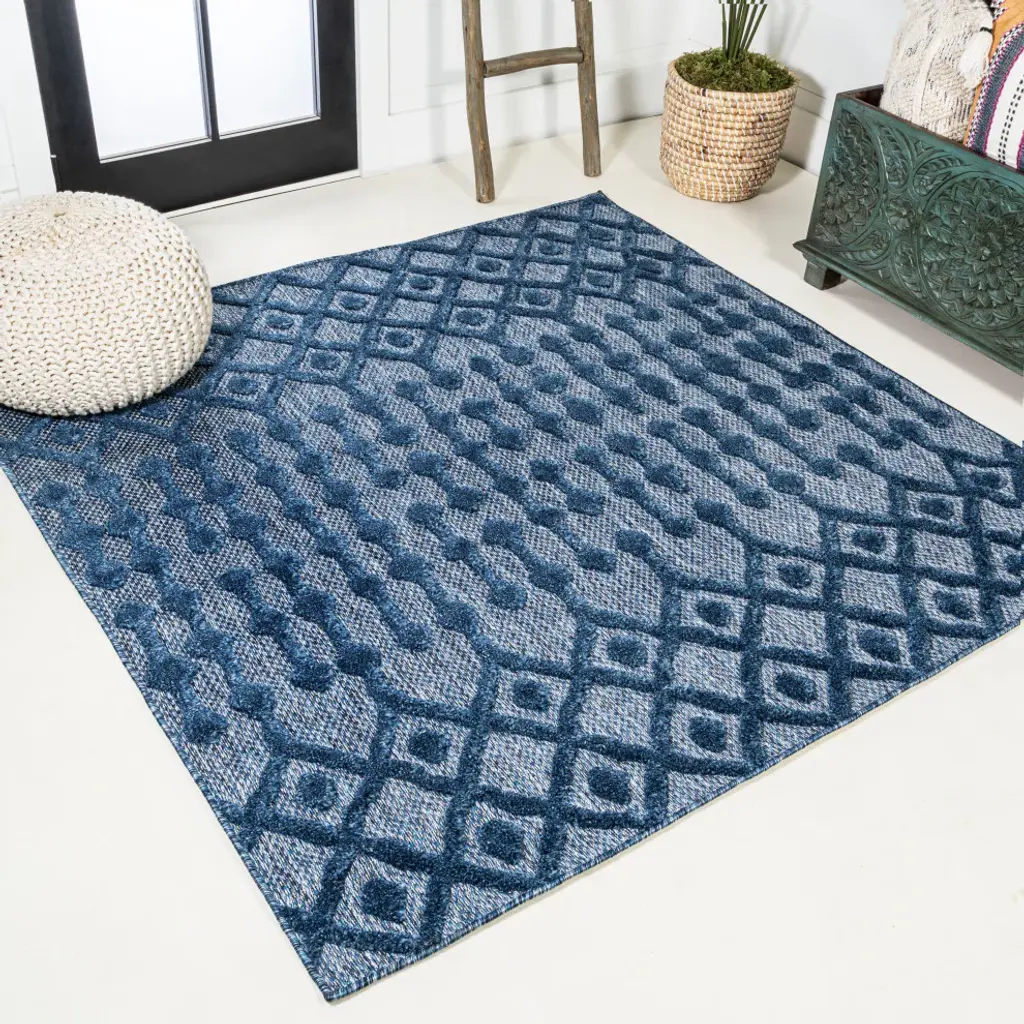 Peralta Moroccan Diamond Indoor/outdoor Navy 5' Square Area Rug