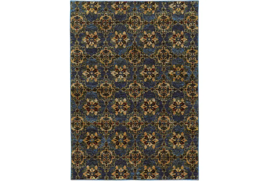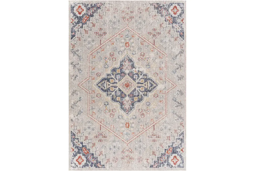 Percy Transitional Medallion - Blue/gray/orange Area Rug - 5'3" X 7'6" Rectangle
