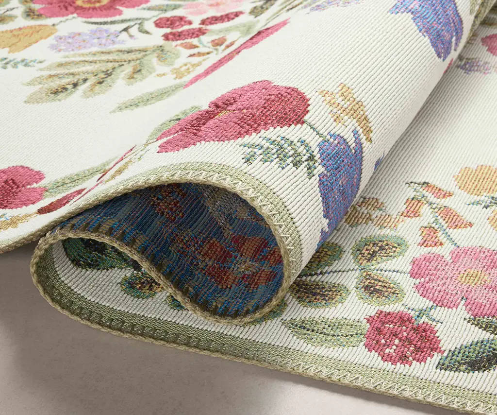 An abundant center medallion of our Blossom design makes a statement in a vibrant color palette. The Perennial collection features indoor/outdoor area rugs, ideal for patios, mudrooms, hallways or playrooms. The rugs are power-loomed of polypropylene and polyester for durability and weather resistance. Simply hose them off and air-dry when needed.