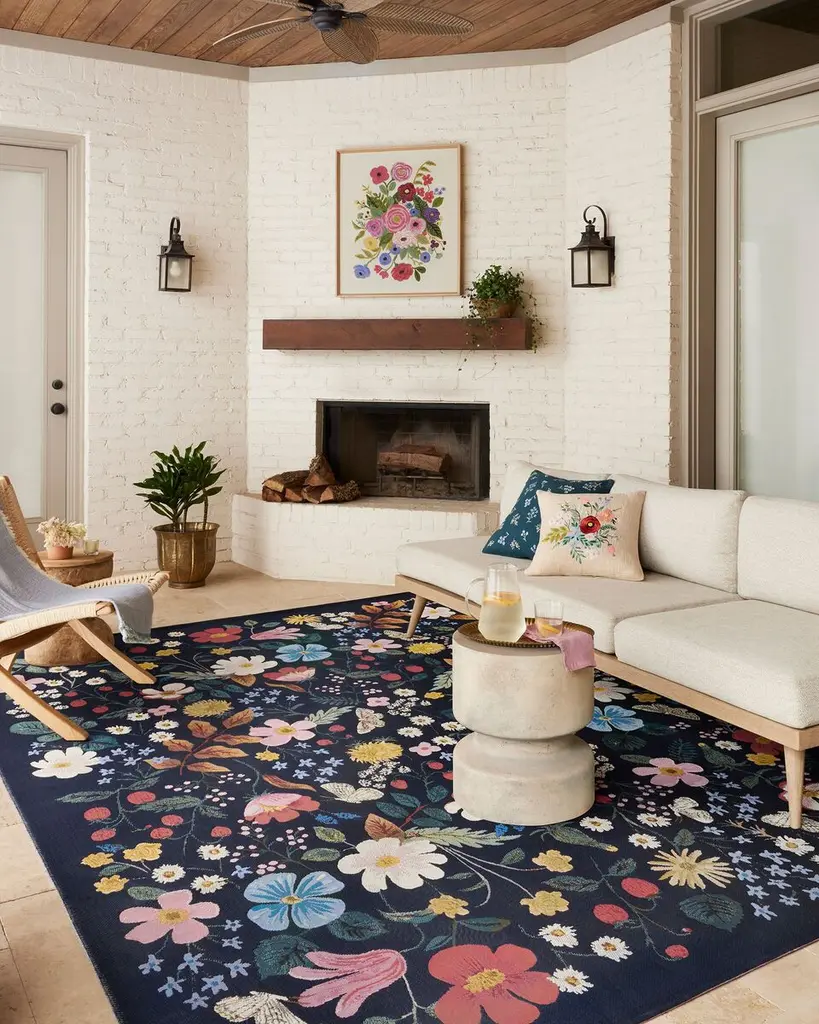 The Perennial Collection is the first outdoor area rug from Rifle Paper Co. x Loloi. Signature florals in bold, vibrant palettes make each rug a standout whether it’s styled indoors or out, on patios or in mudrooms, hallways, or playrooms. The rug is power-loomed of polypropylene and polyester for durability and weather resistance, simply hose off and air-dry when needed. Made in Egypt. This collection is Oeko-Tex® certified, ensuring its materials don't contain harmful substances.