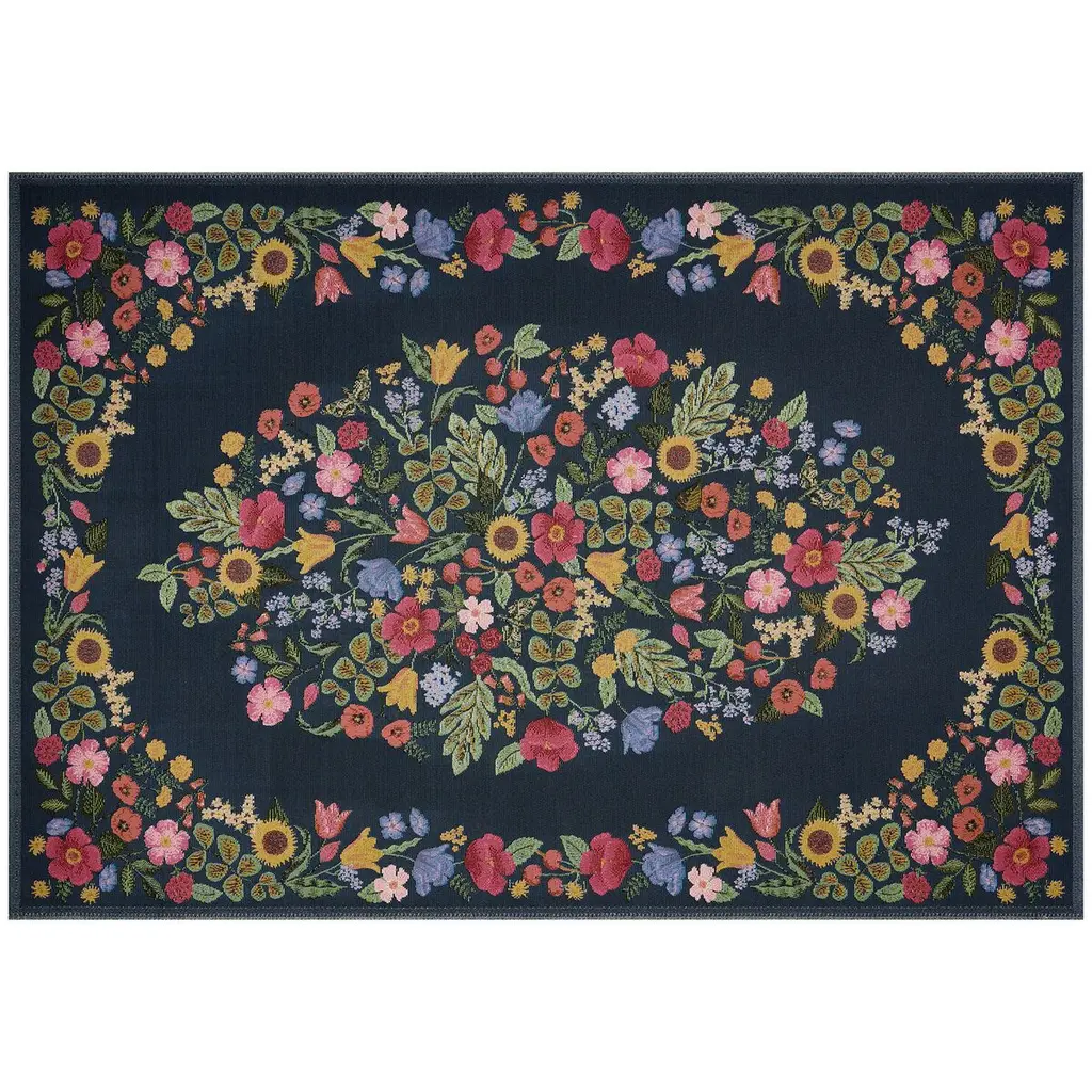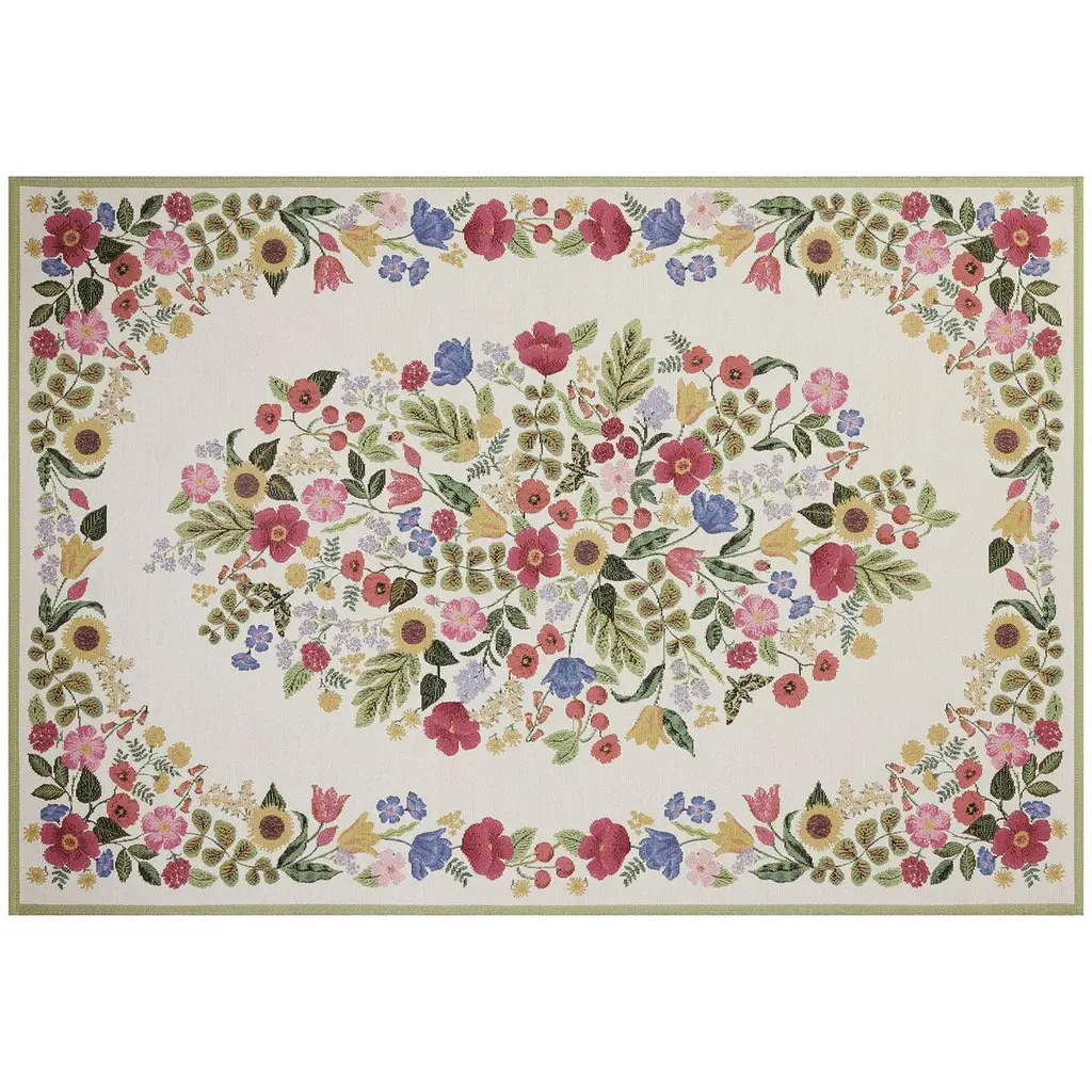 The Perennial Collection is the first outdoor area rug from Rifle Paper Co. x Loloi. Signature florals in bold, vibrant palettes make each rug a standout whether it’s styled indoors or out, on patios or in mudrooms, hallways, or playrooms. The rug is power-loomed of polypropylene and polyester for durability and weather resistance, simply hose off and air-dry when needed. Made in Egypt. This collection is Oeko-Tex® certified, ensuring its materials don't contain harmful substances.
