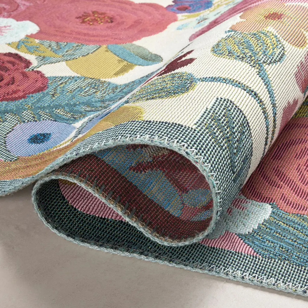 The Perennial Collection is the first outdoor area rug from Rifle Paper Co. x Loloi. Signature florals in bold, vibrant palettes make each rug a standout whether it’s styled indoors or out, on patios or in mudrooms, hallways, or playrooms. The rug is power-loomed of polypropylene and polyester for durability and weather resistance, simply hose off and air-dry when needed. Made in Egypt. This collection is Oeko-Tex® certified, ensuring its materials don't contain harmful substances.