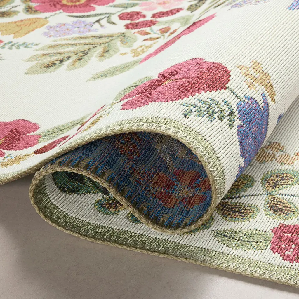 The Perennial Collection is the first outdoor area rug from Rifle Paper Co. x Loloi. Signature florals in bold, vibrant palettes make each rug a standout whether it’s styled indoors or out, on patios or in mudrooms, hallways, or playrooms. The rug is power-loomed of polypropylene and polyester for durability and weather resistance, simply hose off and air-dry when needed. Made in Egypt. This collection is Oeko-Tex® certified, ensuring its materials don't contain harmful substances.