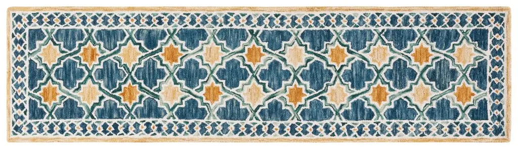 Introducing our exquisite 4' x 6' navy and yellow area rug, a perfect combination of style and craftsmanship. Designed to transform your space with a touch of Bohemian elegance, this small rectangle rug boasts a plush 1/2" pile height that provides comfort underfoot. The rug showcases a striking pattern featuring intricate geometric shapes that add a vibrant and dynamic aesthetic to any room. Masterfully hand-tufted in India, this rug is a testament to traditional techniques, made from a luxurious blend of 85% wool and 15% cotton, ensuring durability and a soft texture that you'll love to walk on. The navy background is adorned with yellow accents, creating a harmonious contrast that will complement a variety of decor themes. Ideal for your living room, bedroom, or office, this rug is not just a piece of decor; it's an investment in timeless style and quality. Elevate your home's interior with this beautiful rug that seamlessly blends bold design with artisanal craftsmanship.
