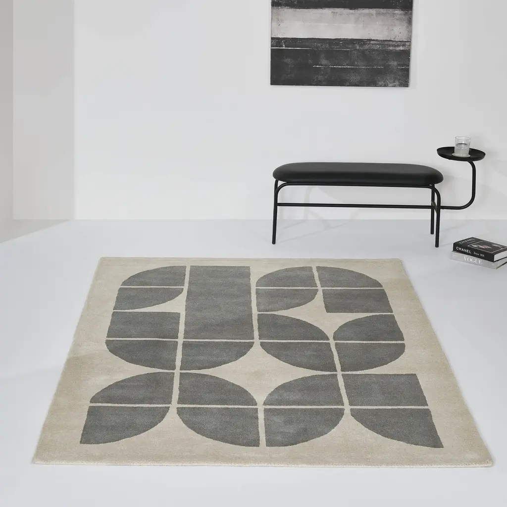 The aesthetic of the modern or mid-century modern interior is complete when this hand-tufted rug comes into the space. Thanks to a wool construction, this rug adds comfort to an interior and elevates experiences in its midst. Featuring a graphic design print, this rug is eye-catching to any passerby no matter the size a homeowner selects.