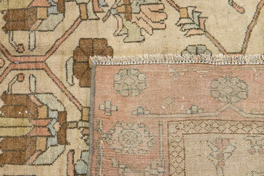 Persian Malayer Tan Wool Rug From The 1910s With Geometric Pattern