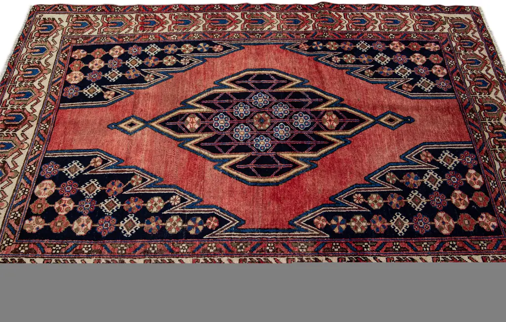 Persian Red Geometric Wool Rug