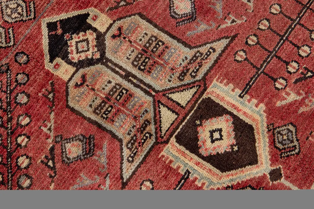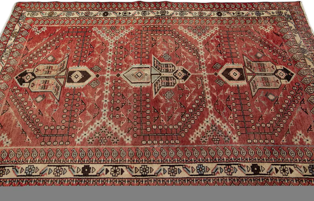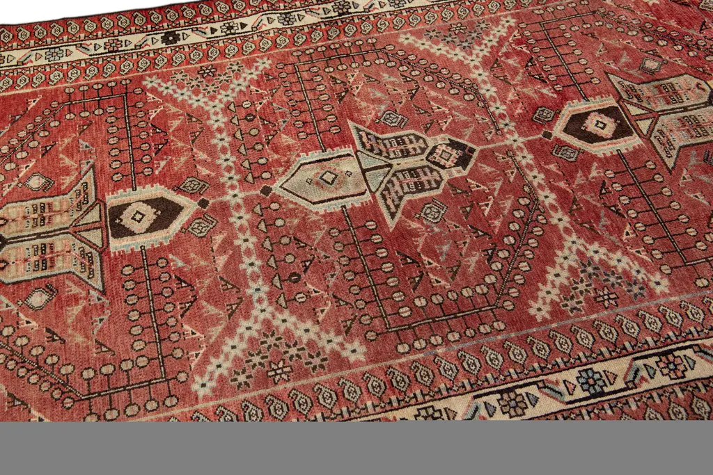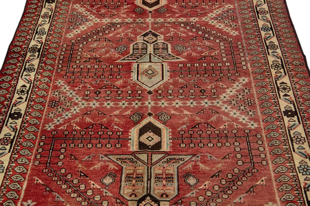Beautiful Vintage Persian hand-knotted Wool rug with the red field. This Persian rug has a multicolor accents in all over geometric design. This rug measures: 4'2" X 6'4".