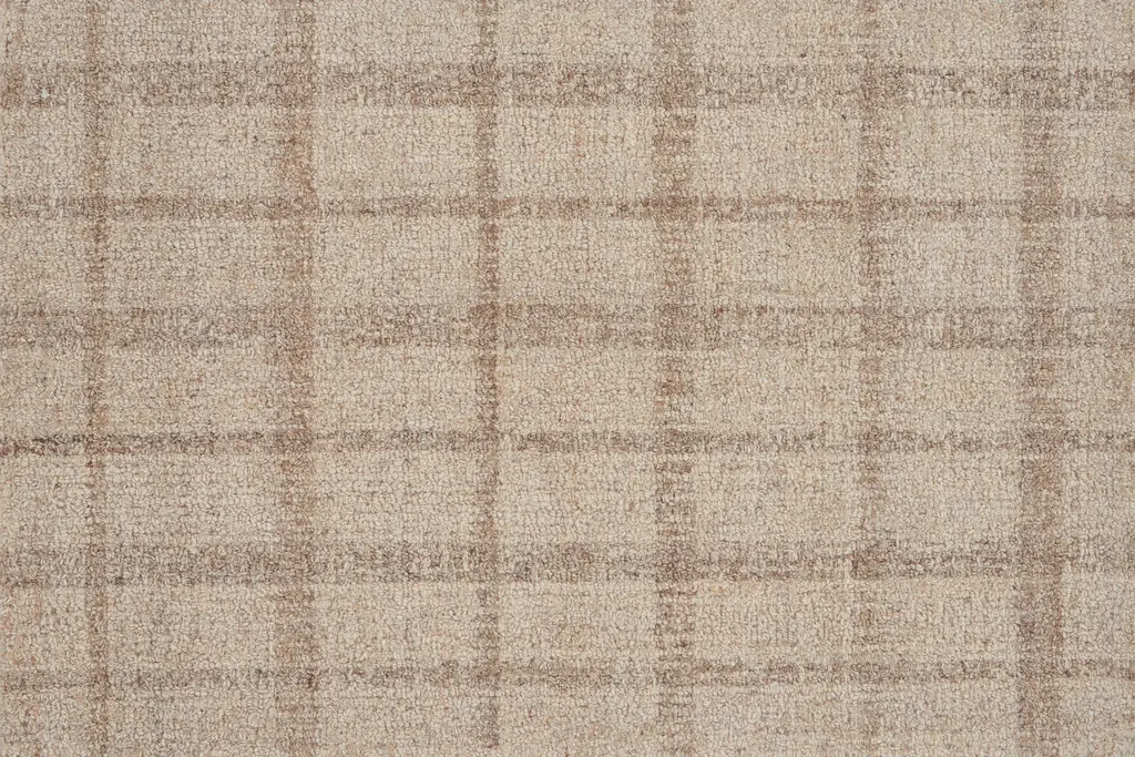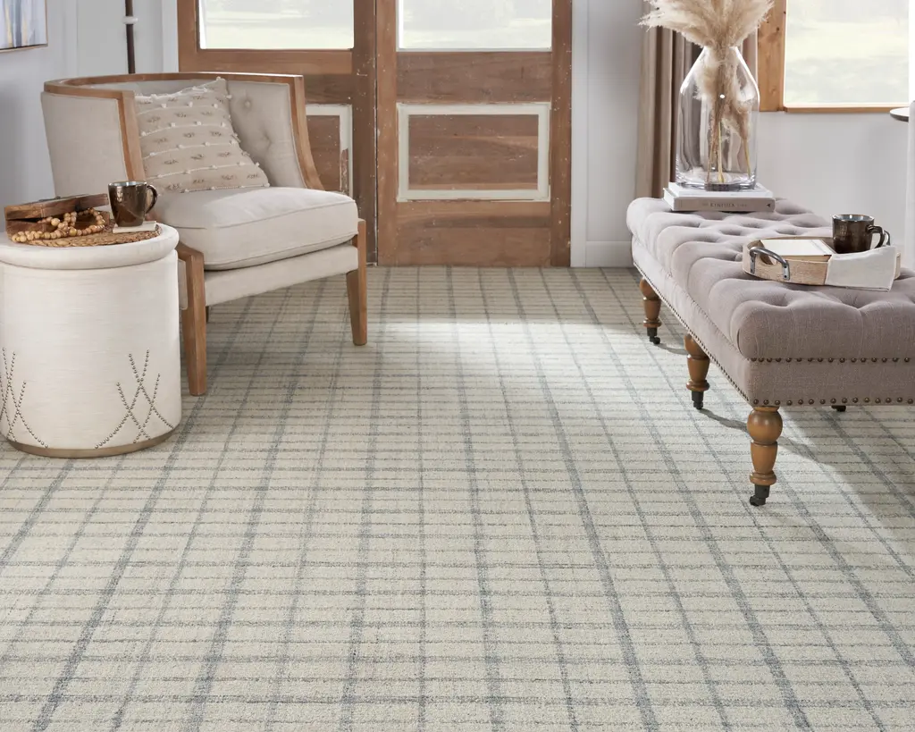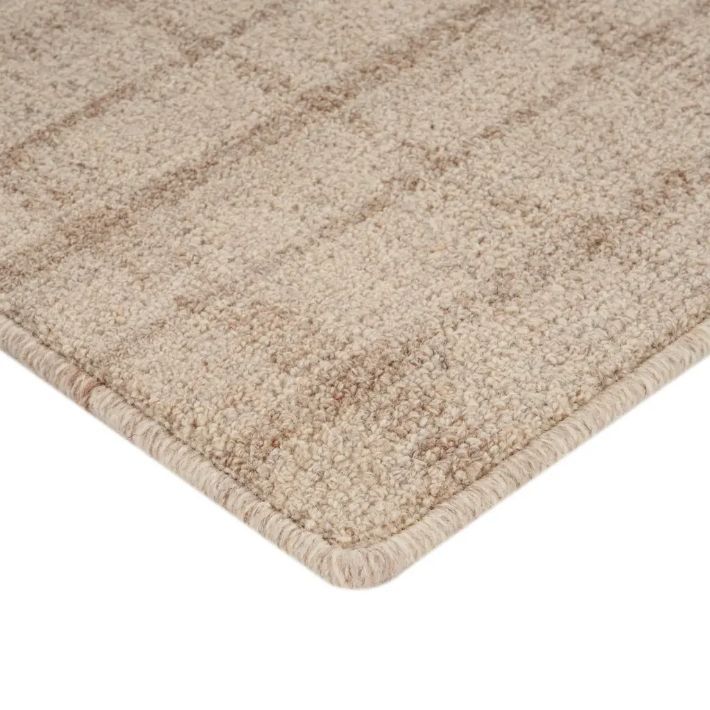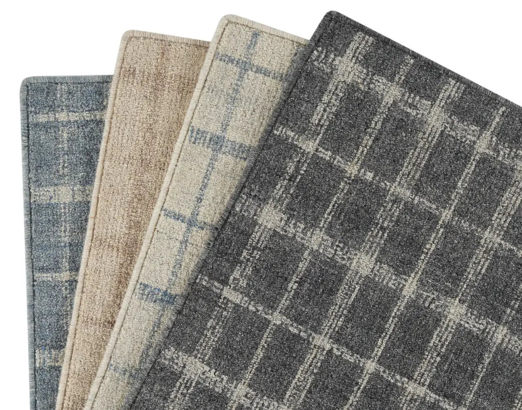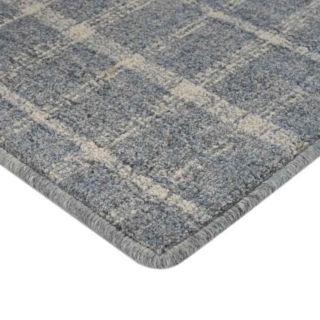 The Perth Plaid Custom Carpet offers a versatile flooring solution with a sophisticated design. This custom-sized carpet is made from 100% wool, known for its durability, soft feel underfoot, and natural resistance to crushing and staining. Its loop pile construction creates a dense, uniform texture, making it suitable for various residential and commercial settings. Featuring a distinct plaid pattern in a Horizon color, the carpet presents a blend of grey tones. The design showcases an abstract or subtly distressed plaid, where lighter grey lines form a grid against a deeper grey background. This contemporary interpretation of a classic pattern adds visual interest without dominating a room's aesthetic. As a custom-sized carpet, the Perth Plaid can be tailored to specific dimensions, ranging from 2' x 5' up to 13' x 30'. This flexibility allows for integration into diverse room layouts, from creating a focal point in a living area to adding comfort in a bedroom or defining a hallway. The pattern repeat measures 9" in width by 5.5" in length, providing a consistent design across installations. Expertly crafted in India, this carpet combines quality materials with robust construction. Its wool fibers and durable loop pile ensure long-lasting performance and straightforward maintenance, offering both comfort and style. The Perth Plaid Custom Carpet provides a high-quality, customizable flooring option with a timeless yet contemporary appeal.