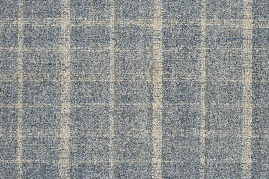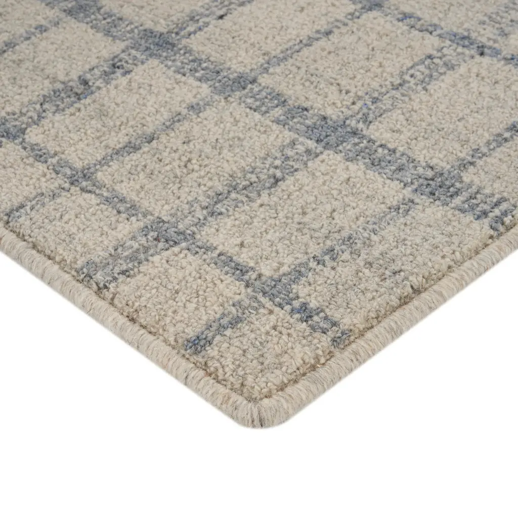 The Perth Plaid Custom Carpet offers a versatile flooring solution with a sophisticated design. This custom-sized carpet is made from 100% wool, known for its durability, soft feel underfoot, and natural resistance to crushing and staining. Its loop pile construction creates a dense, uniform texture, making it suitable for various residential and commercial settings. Featuring a distinct plaid pattern in a Horizon color, the carpet presents a blend of grey tones. The design showcases an abstract or subtly distressed plaid, where lighter grey lines form a grid against a deeper grey background. This contemporary interpretation of a classic pattern adds visual interest without dominating a room's aesthetic. As a custom-sized carpet, the Perth Plaid can be tailored to specific dimensions, ranging from 2' x 5' up to 13' x 30'. This flexibility allows for integration into diverse room layouts, from creating a focal point in a living area to adding comfort in a bedroom or defining a hallway. The pattern repeat measures 9" in width by 5.5" in length, providing a consistent design across installations. Expertly crafted in India, this carpet combines quality materials with robust construction. Its wool fibers and durable loop pile ensure long-lasting performance and straightforward maintenance, offering both comfort and style. The Perth Plaid Custom Carpet provides a high-quality, customizable flooring option with a timeless yet contemporary appeal.
