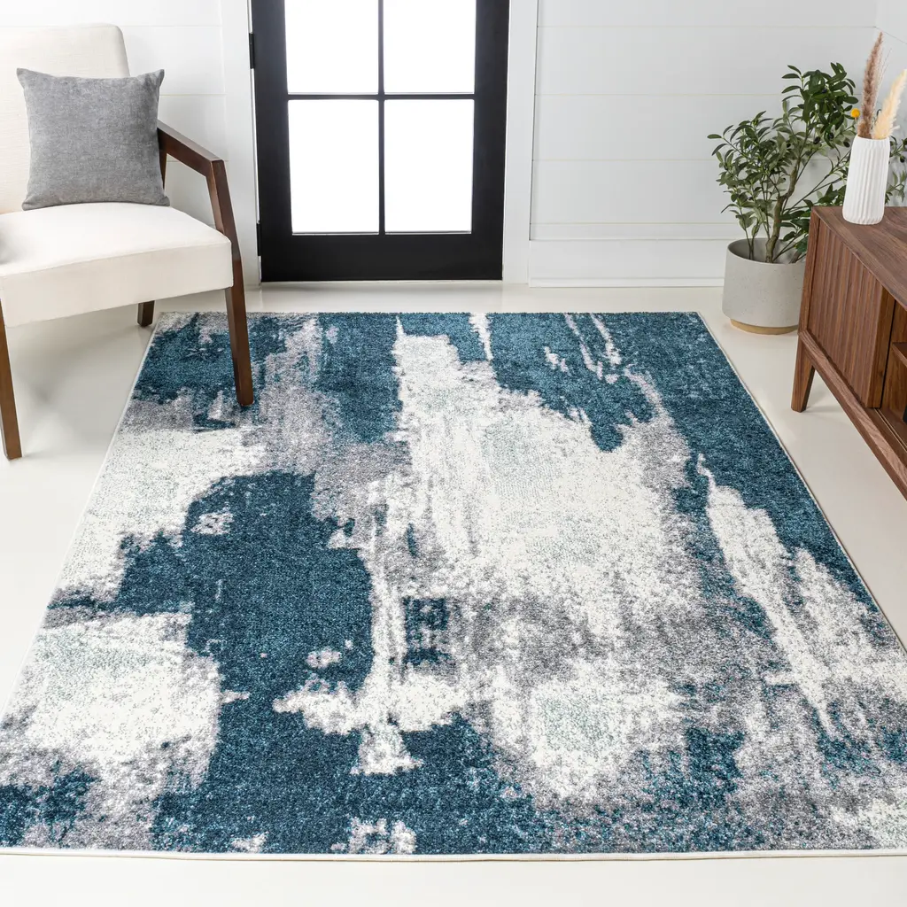 Petalo Abstract Two-Tone Modern Area Rug - Blue,cream / 8 X 10