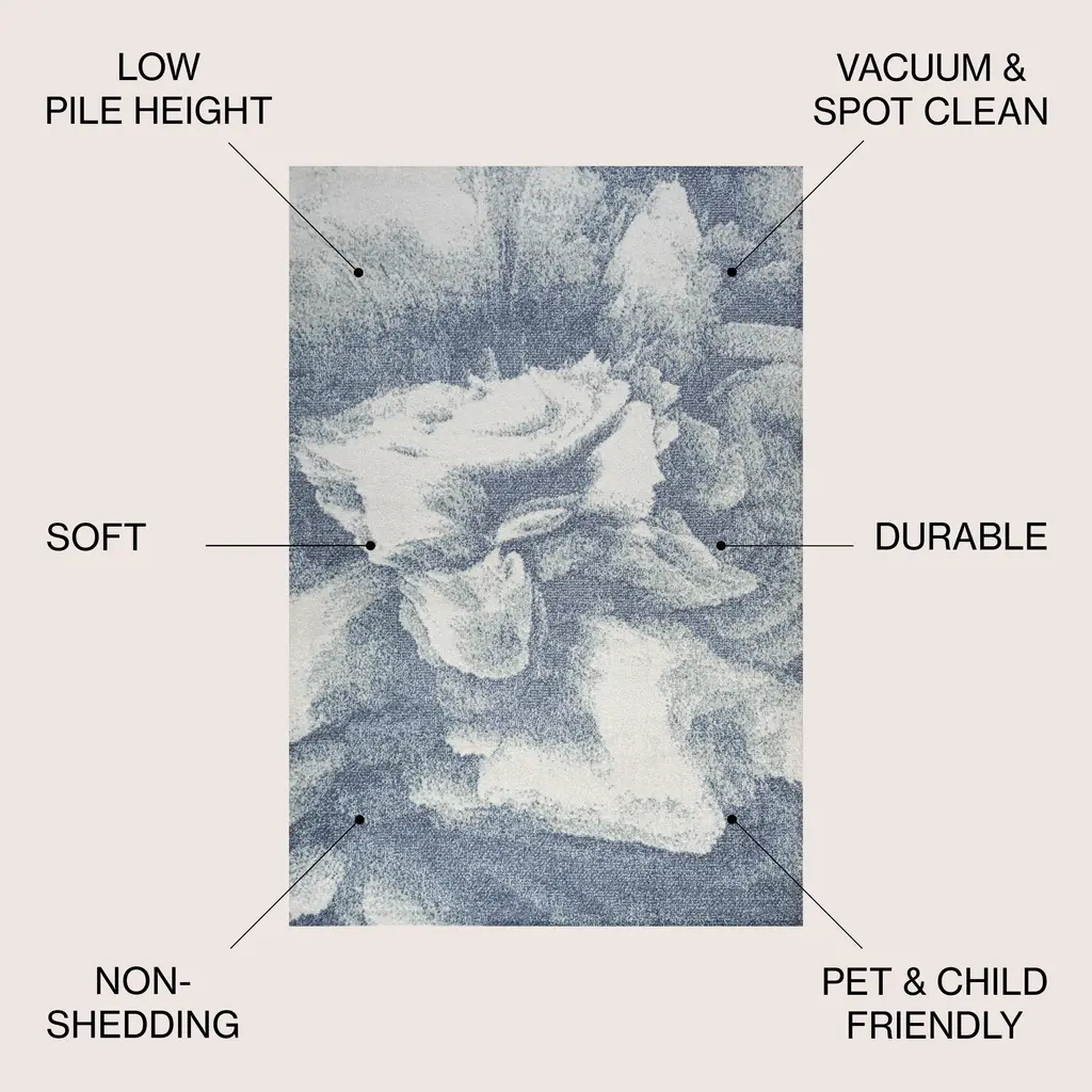 Inspired by the folded petals of a flower, this bold rug has a modern, coastal vibe. The modern, abstract design's overall pattern makes it perfect for homes with kids and pets. It's the perfect centerpiece for a mid-century modern, contemporary, beach house or minimalist interior.