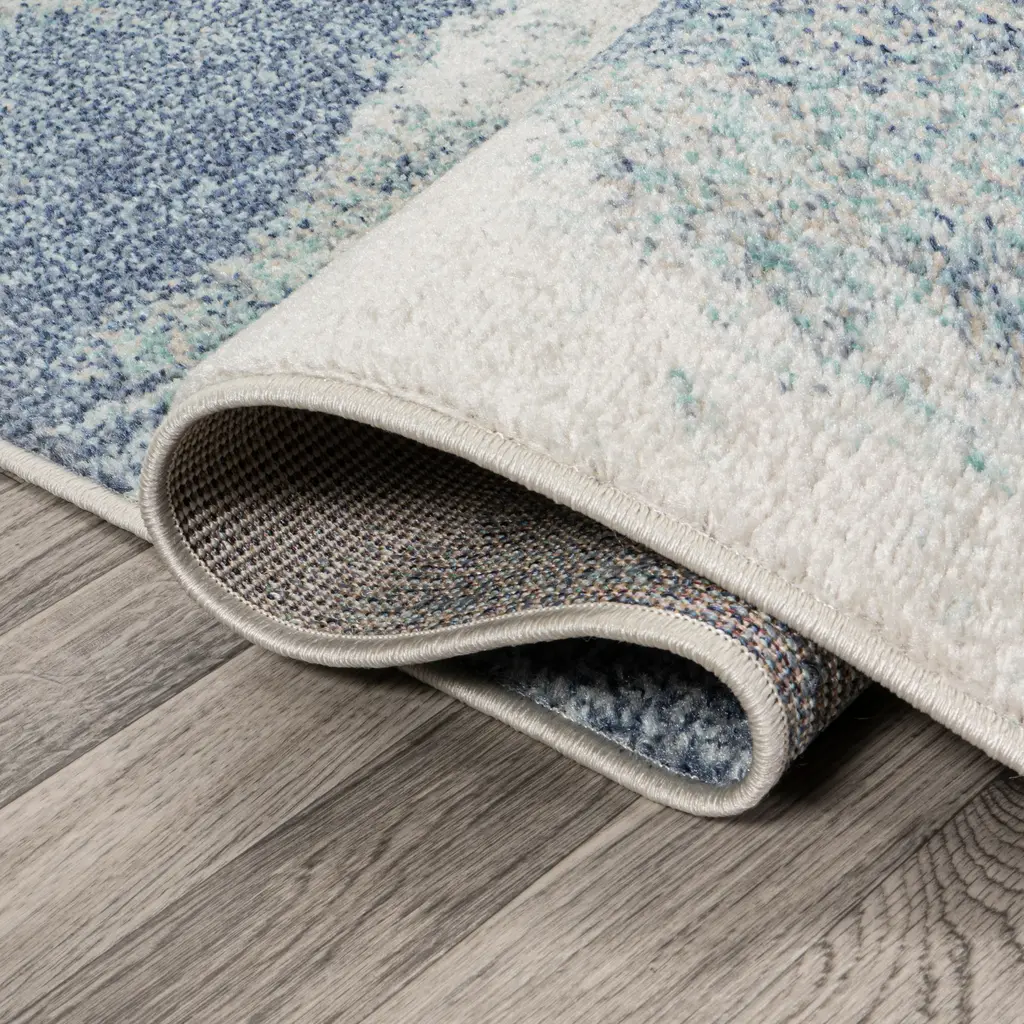 Inspired by the folded petals of a flower, this bold rug has a modern, coastal vibe. The modern, abstract design's overall pattern makes it perfect for homes with kids and pets. It's the perfect centerpiece for a mid-century modern, contemporary, beach house or minimalist interior.