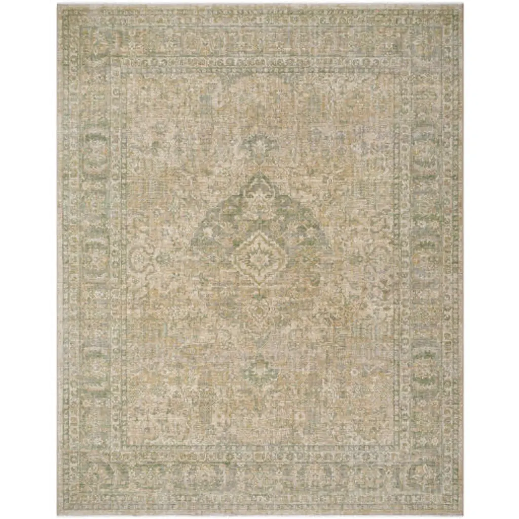 Phileas Updated Traditional Moss Green Oushak Patterned Rug - 5'x7'6"