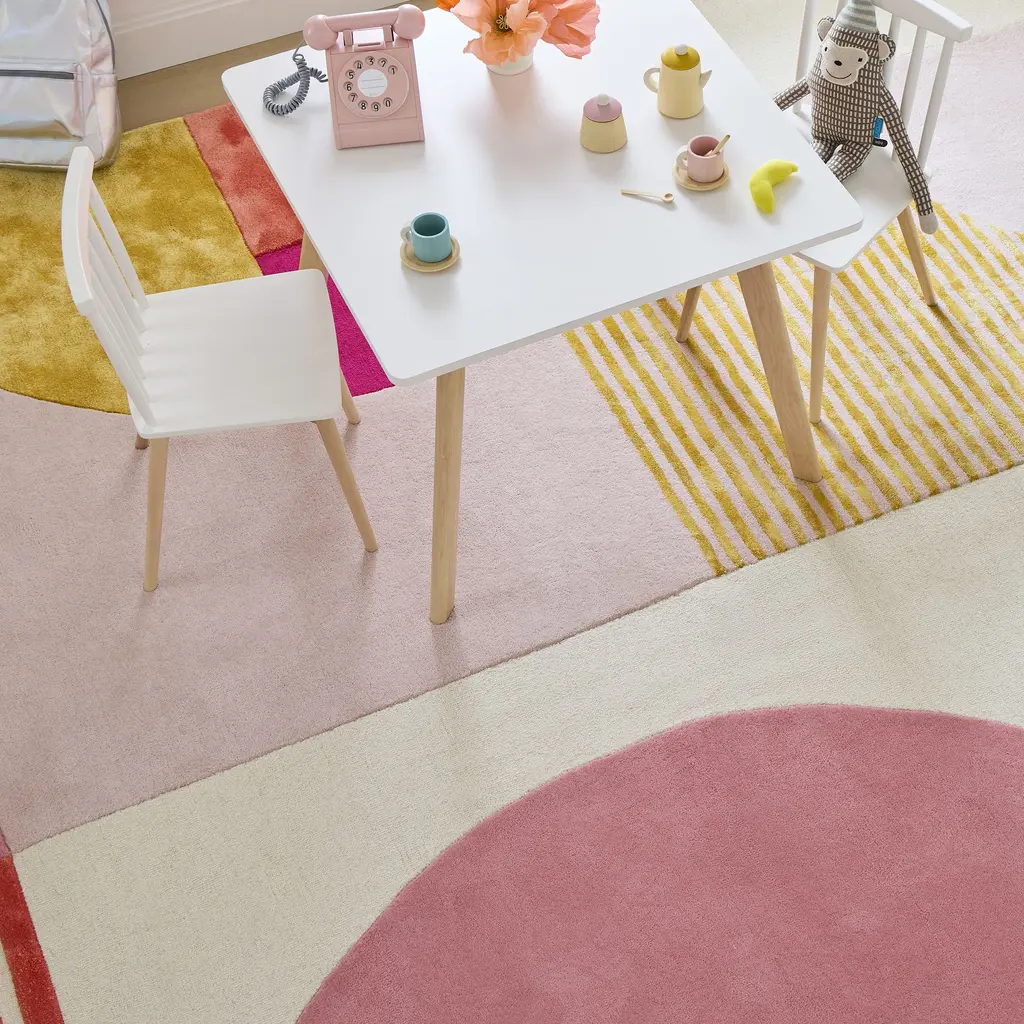 Designed for kids' bedrooms to grow with their personality & style. Each rug is handcrafted by skilled artisans. Made of wool and viscose to be soft underfoot.
